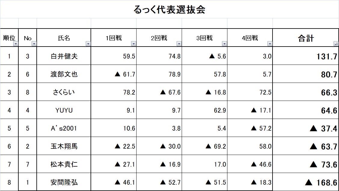 4位で予選通過した〜!! 個人は222からの、最終戦地蔵ラスになりかけからの3。 最終5位とは5ポイント差くらいで通過したから、それがなかったら敗退やった・・ 発表の時は生きた心地がしなかった💦 チームメイトに助けられました。 #ノーレート雀荘対抗戦 x.com/nrmchampionshi…
