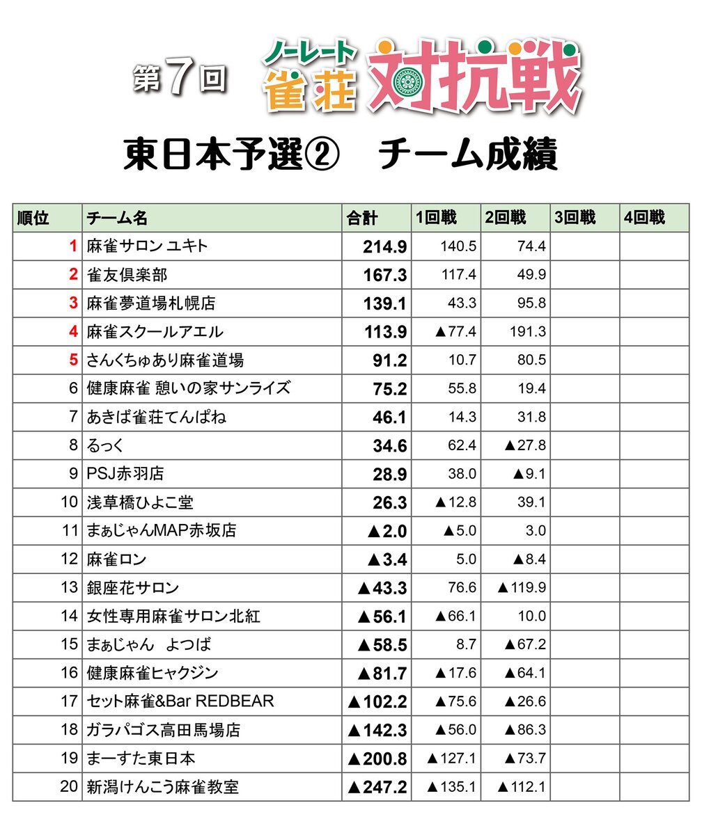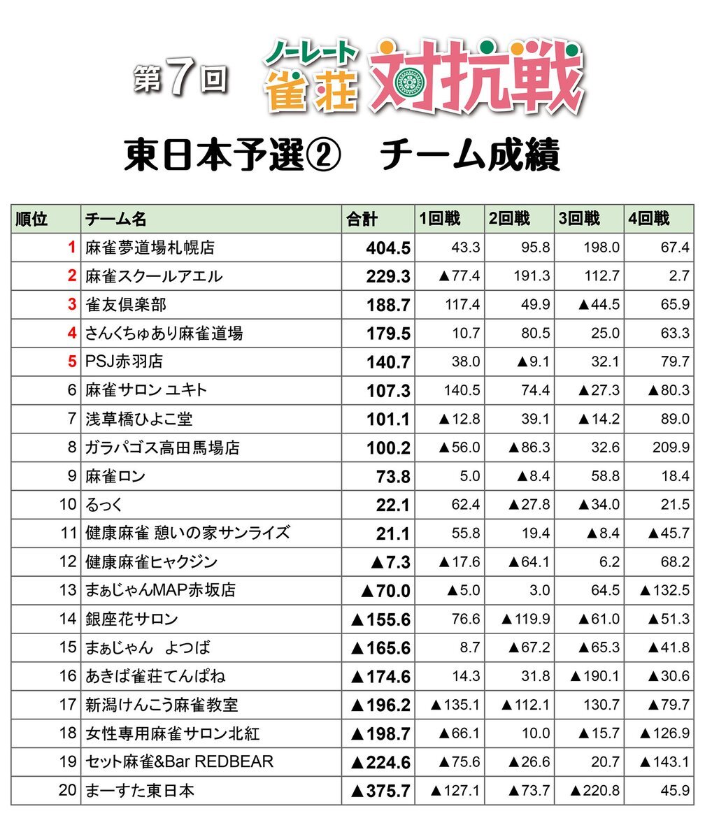 #ノーレート雀荘対抗戦 11月1日(土)に行われた東日本予選②のレポートを掲載!準決勝へ駒を進めた5チームは…!? mj-news.com/news/report_nr…