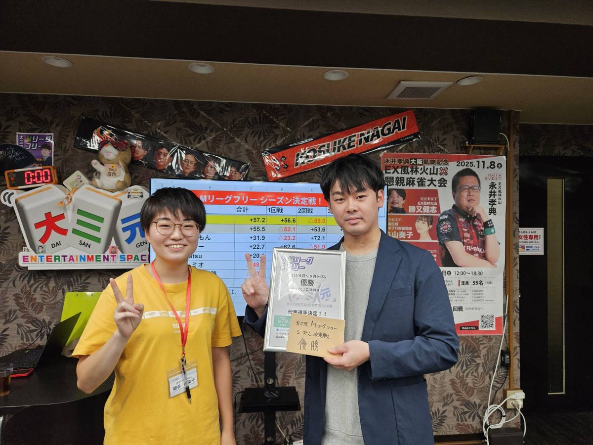 ✨🎊シーズン決定戦終了しました🎊✨ ✨優勝は「アキゼさん」おめでとうございます✨ 🥈準優勝の「総理さん」と共に ノーレート雀荘対抗戦でも 大暴れしてきてください🤩🤩 ✨✨ソース監督のもとに今期最強の3名が集まったZe #ノーレート雀荘対抗戦 pic.x.com/lKH476M4ce