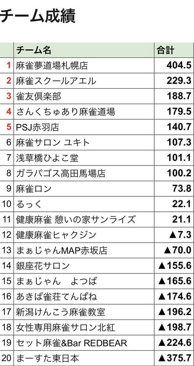 ロンチームは善戦虚しく、9/20位でフィニッシュ! 個人は4/80位で2年越しのリベンジ成功にして良いかな笑 ただ姉妹チームのPSJ赤羽が準決勝に進出してくれたので、ここからはPSJを全力で応援します! #ノーレート雀荘対抗戦 x.com/NRMChampionshi…