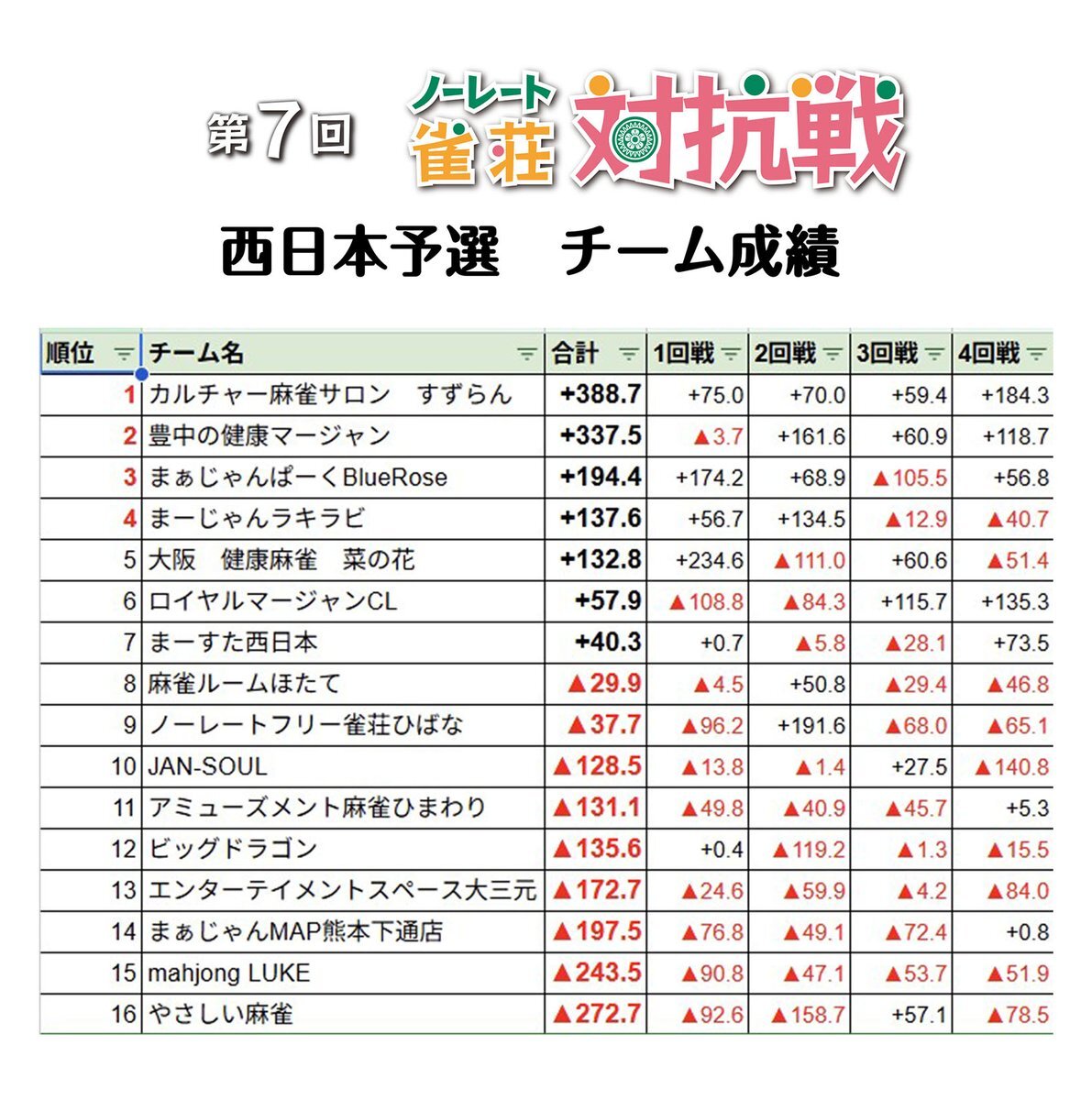#ノーレート雀荘対抗戦 西日本予選レポート! 熾烈なボーダー争いを制して準決勝へ勝ち上がった4チームは…!? mj-news.com/news/report_nr…
