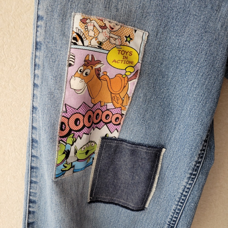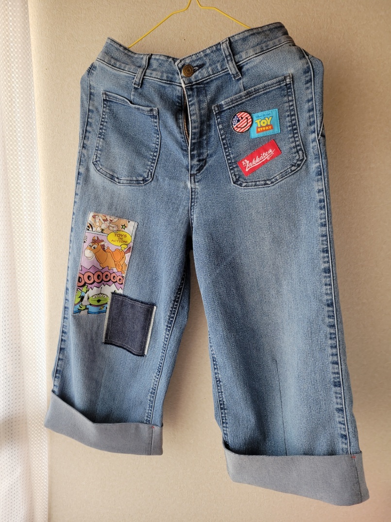 娘が断捨離したGパンを拾い上げてリメイク。 裾が結構ボロボロだったので、7分丈に作り替えました。 ハギレ消費はわずか5gでしたが、モチベーションは上がりました。 リメイクしようと思って放置してある服がまだ数着あるのです…。 残:3290g #ハギレ活用大作戦 #ハギレ消費チャレンジ #古着リメイク pic.x.com/7jB6rfi218