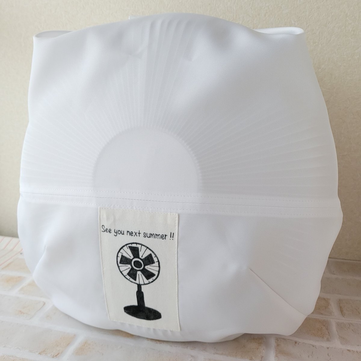 一気に寒くなったので、流石に扇風機をしまおうという訳です。 いつもは45Lのゴミ袋に入れていましたが、半年置いておくと埃とかでベタベタになるので、洗えるのは嬉しいかなと♪ 明日は足部分を入れる袋も作ります! 消費:80g、残:3205g #ハギレ活用大作戦 #ハギレ消費チャレンジ #扇風機カバー pic.x.com/yPvNB95xp4