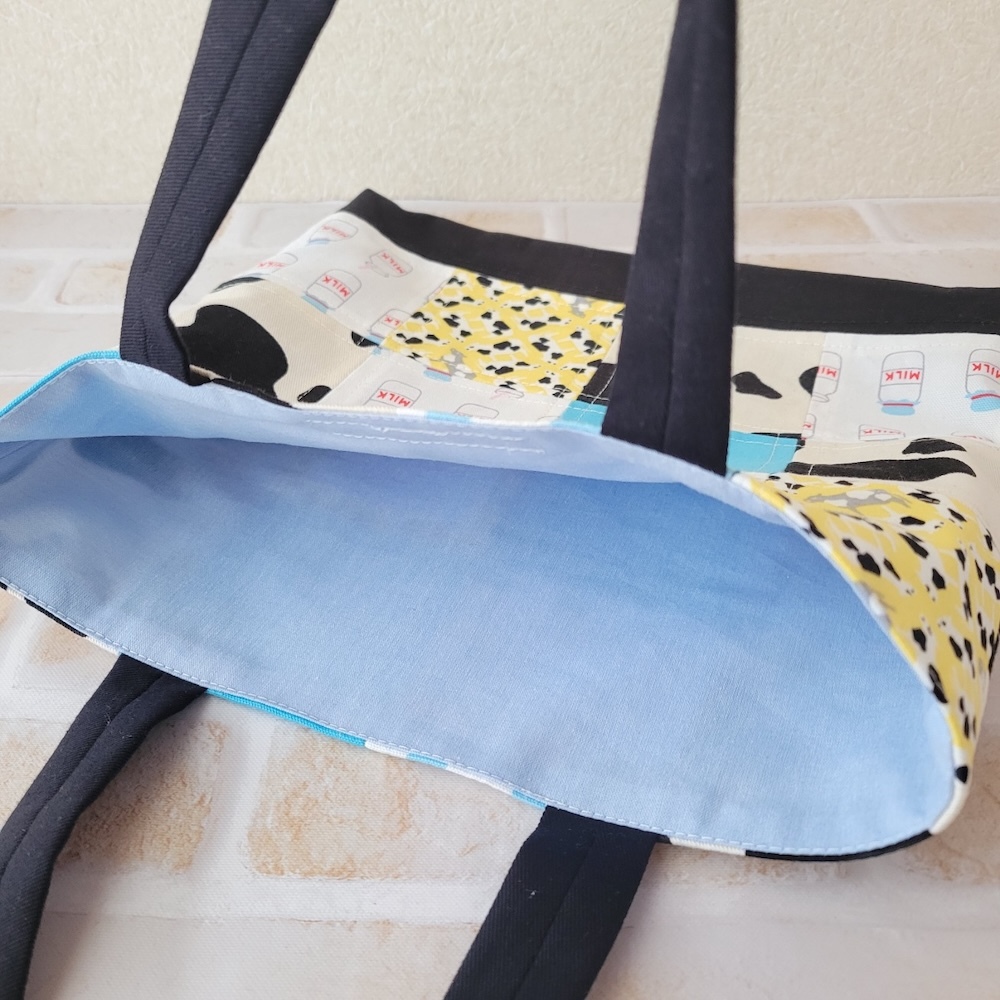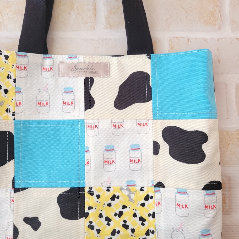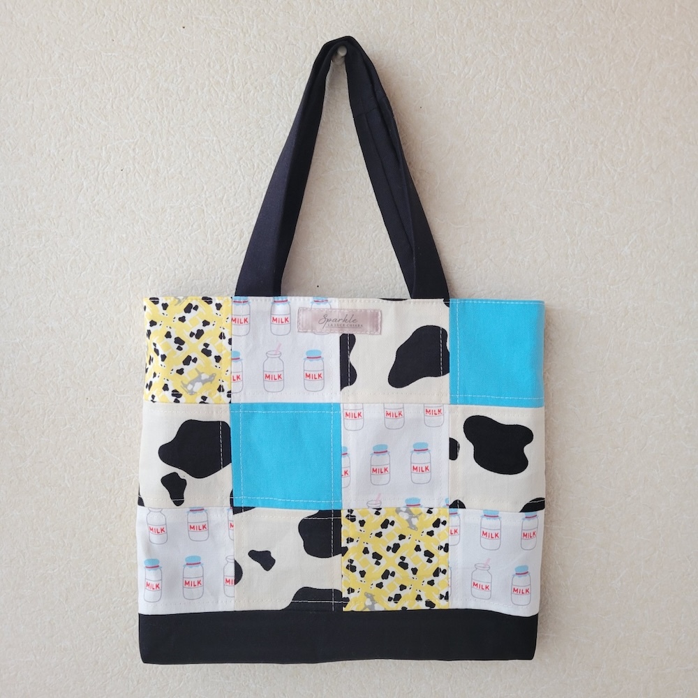 今日は牛関連をまとめて消費。 生地の色味も厚さも残りサイズもバラバラでしたが、最大公約数の正方形に整えて、黒で〆たらなんとかまとまりました♪ 歳末バザーに寄付します。 消費;110g、残:3225g。 #ハギレ活用大作戦 #牛柄 #お散歩バッグ pic.x.com/zHbnZbNflt