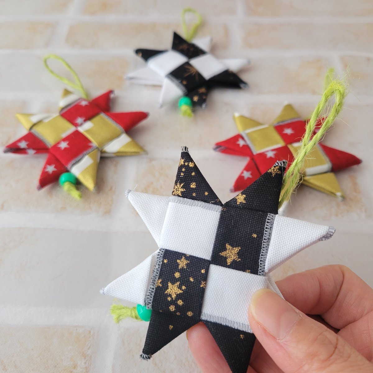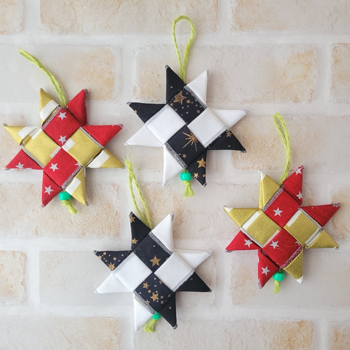 4cm×25cm×4枚でx1個作れます。 あまり縫わなくて良いので簡単です♪ ただ、もうハギレの中にクリスマスっぽい色合いのものが無くなっちゃいました🥲 消費:40g、残:3295g。 #ハギレ活用大作戦 #ハギレ消費チャレンジ #ハギレ整理 #クリスマス飾り #星飾り pic.x.com/BHjPR4z2LS