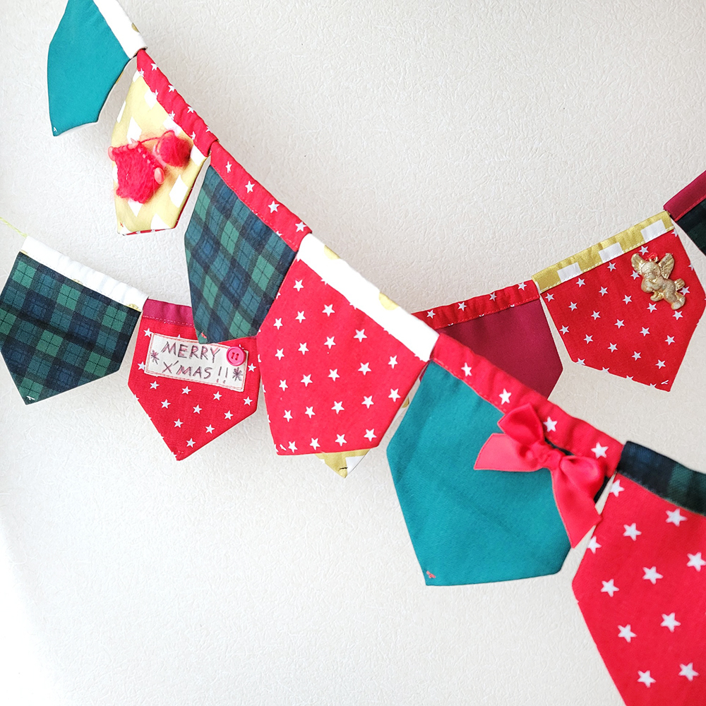 そろそろハロウィンが終わってしまうので、放置していたフラッグを仕上げました。 2枚ほど縫い足して、ちょこっと装飾も入れました。 ミニニットがポイントです。 ボードと星飾りと共に明日ボランティアセンターに寄付してきます☆ 消費:20g、残:2945g #ハギレ活用大作戦 #クリスマス飾り #フラッグ pic.x.com/aBpThyOmRY