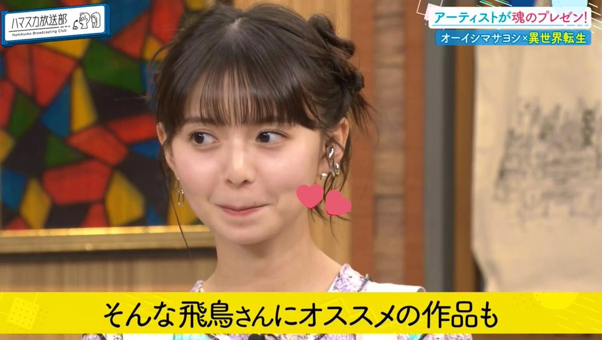 先日のハマスカ飛鳥様スクショ③💖 「天は二物を与えず」という定説である「ことわざ」でさえ覆し「二物」を与えられた飛鳥様🥰 ハマさんの「二物ちゃん」はナイスでしたね😊 #ハマスカ放送部 #齋藤飛鳥 pic.x.com/Ws3tckXMb2 x.com/so913ka/status…