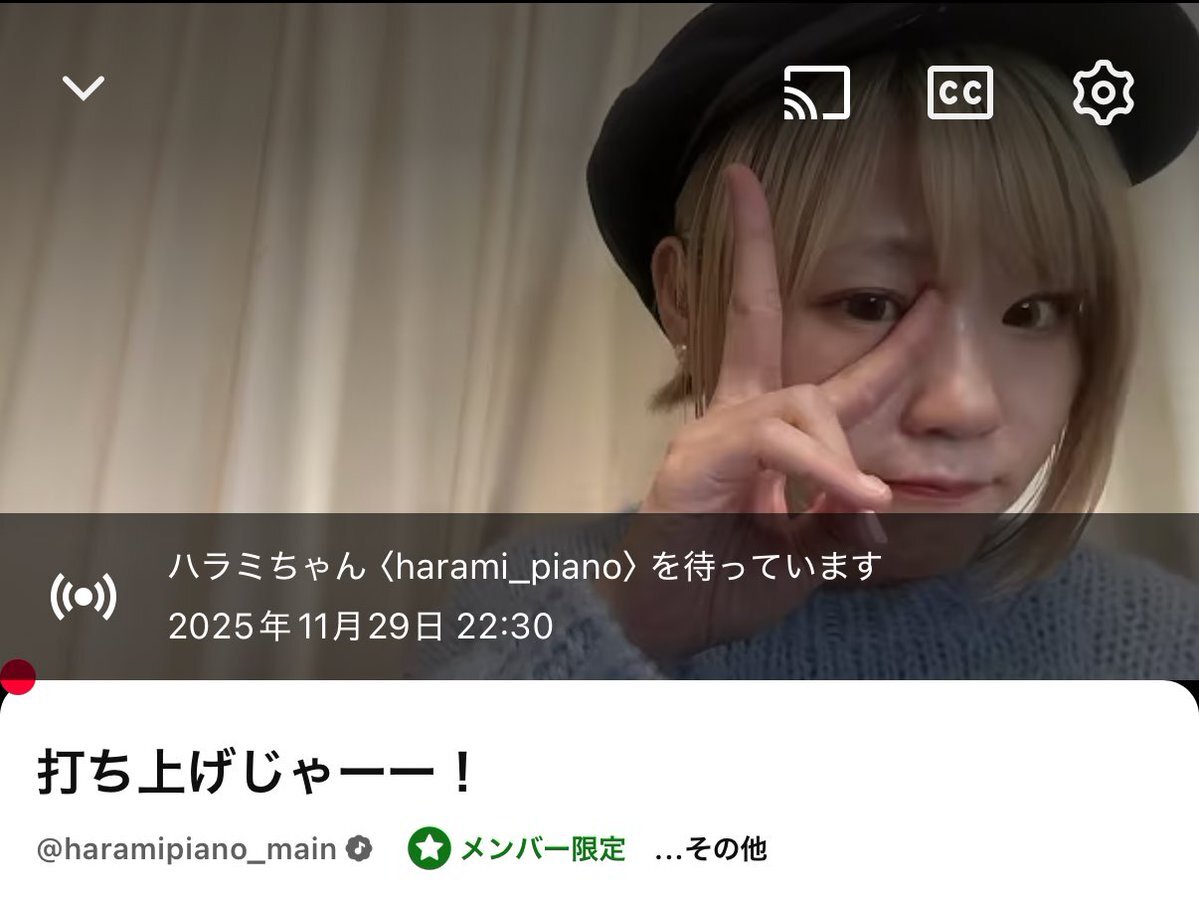 YouTubeメンバーシップ限定生配信はじまります! 📹 youtube.com/live/3iugDTOUo… ▼ご新規さん大歓迎🌾 どなたでもメンバーシップ(ファンクラブ) 入会お待ちしてます💕 harami-piano.com/fanclub/ (↑アプリよりこちらから入った方がお安いです⚠️) x.com/harami_tsushin…