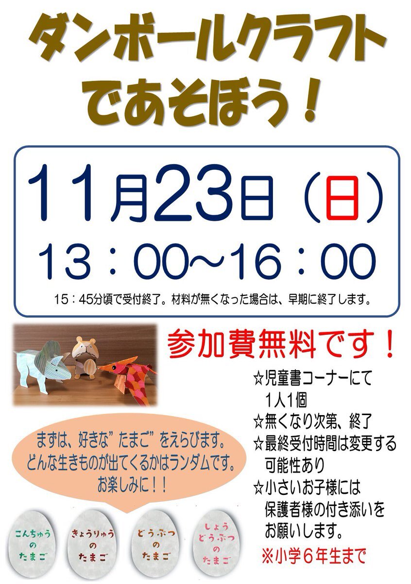 📣イベント告知だよ➿⭐️ / 11/23(日)▷13:00-16:00 《#ダンボールクラフト であそぼう!📦》 \ 参加無料です🤗🌟 ご来店お待ちしております🙇♀️✨ #ものづくり #ハロウィンイベント #姫路イベント #TSUTAYA姫路飾磨店 pic.x.com/bbSbv2tKjY