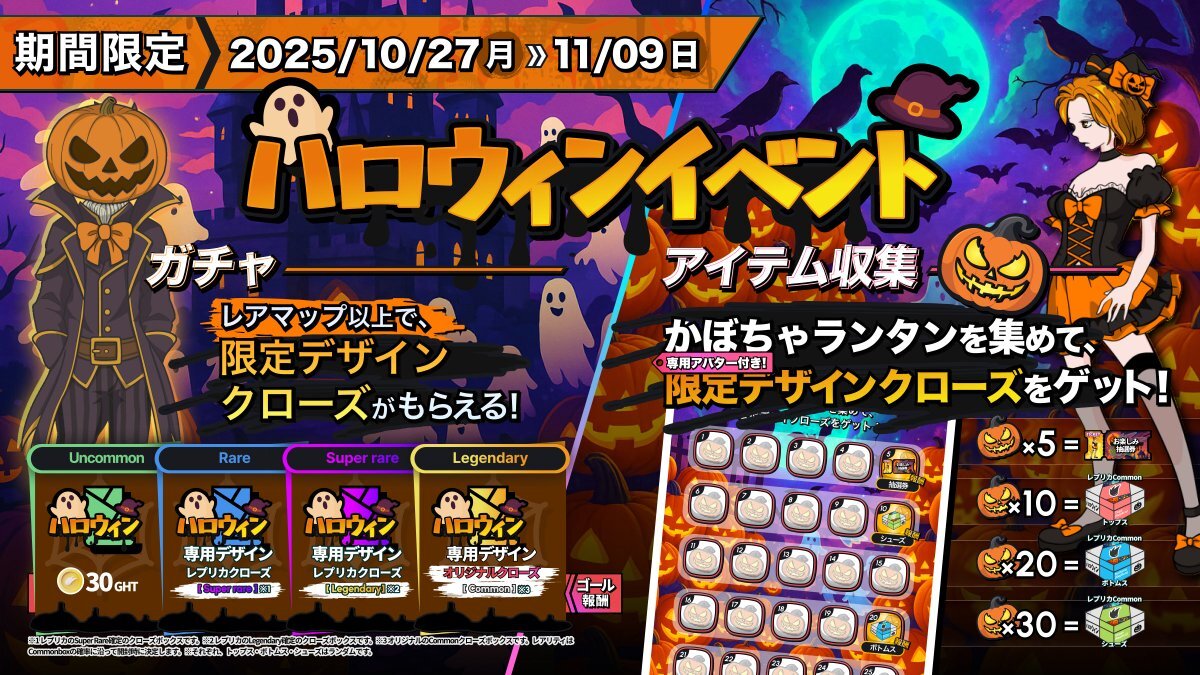 🎃✨**ハロウィンイベントもあと2日**👻🎁 ヘルスリーのハロウィンイベントは9日まで🕯️ みなさん、アルクちゃんの限定デザインクローズはゲットしましたか?👠 最終日9日の22時以降に最後のイベントマップが出るので ラストスパートでゲットしましょう💨 #HEAL3 #ヘルスリー #ハロウィンイベント pic.x.com/zR7Rt3w4jW x.com/HEAL3ofr_jp/st…