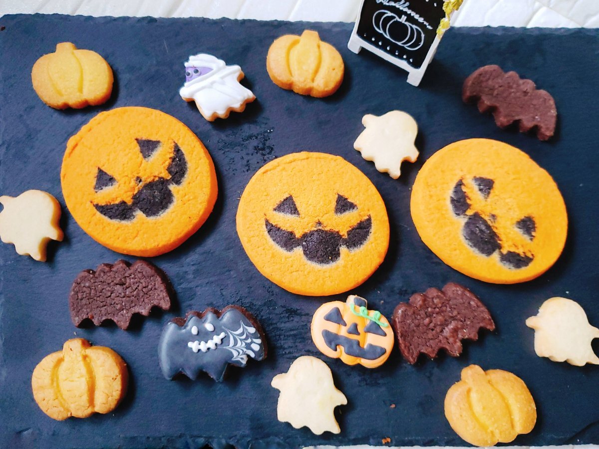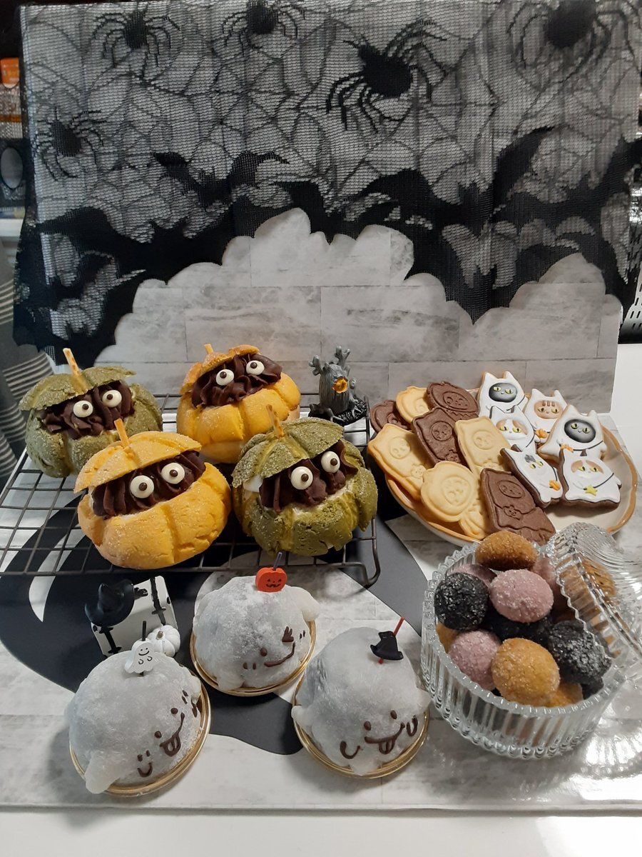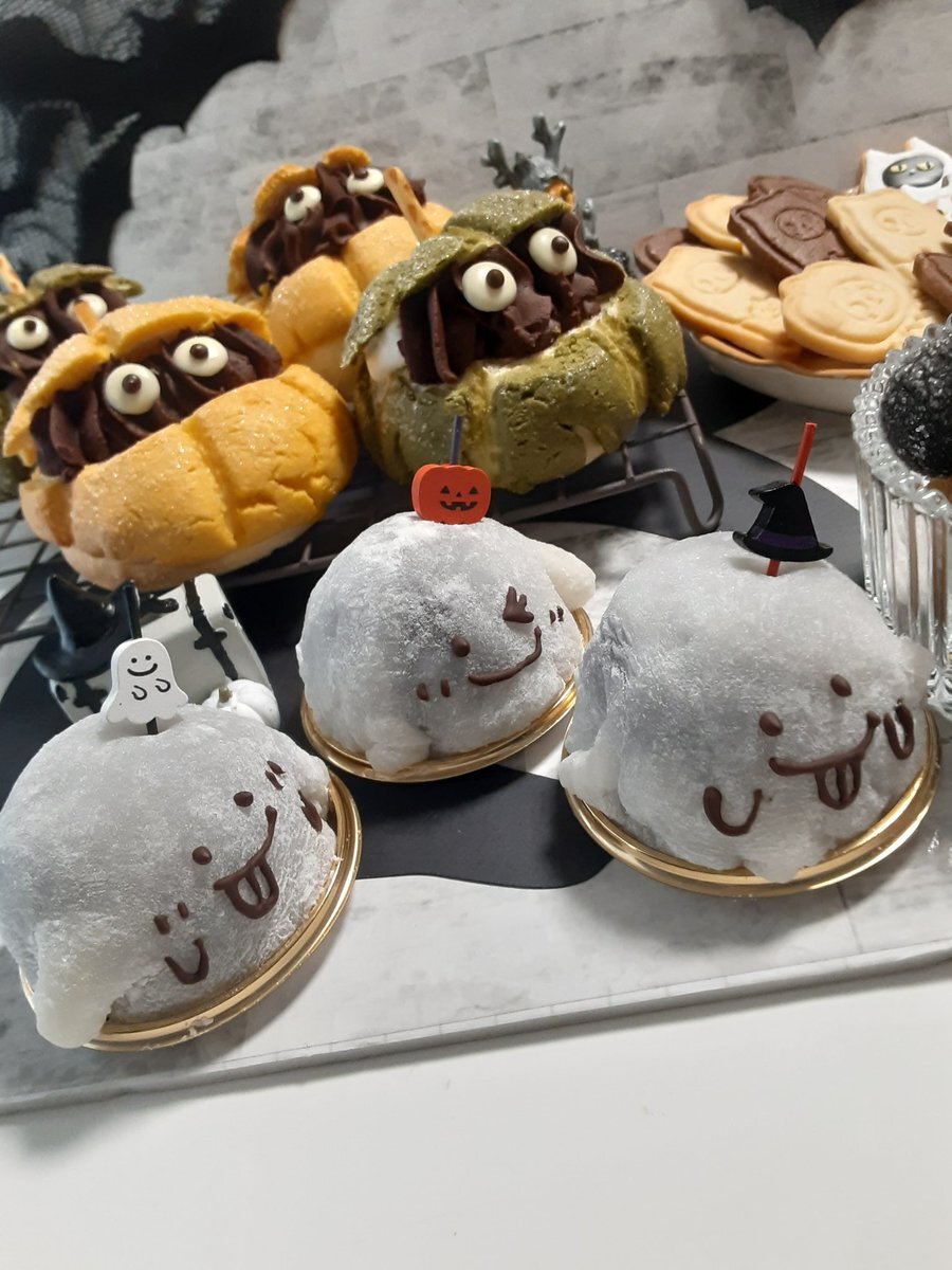 ハッピーハロウィン🎃👻 仕事の定休日都合で月火で作ったハロウィンスイーツたち。 かぼちゃの生チョコメロンパン、オバケのクリーム大福、アイシングクッキー、型抜きクッキー、のこさんレシピのクリスタルボール💕 #コッタ #cotta #ハロウィンスイーツ #お菓子作り好きな人と繋がりたい pic.x.com/duxO4V2Spt