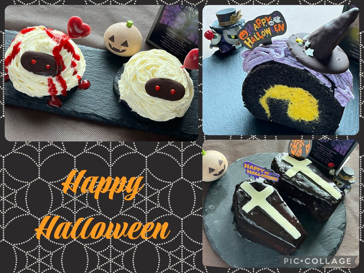 Happy Halloween🎃🦇🕸 今年のハロウィンスイーツです! ・ミイラのかぼちゃモンブラン ・ハロウィンロールケーキ ・棺桶ザッハトルテ風 #ハロウィン #お菓子作り #スイーツ #ハロウィンスイーツ pic.x.com/4whUITAPPt