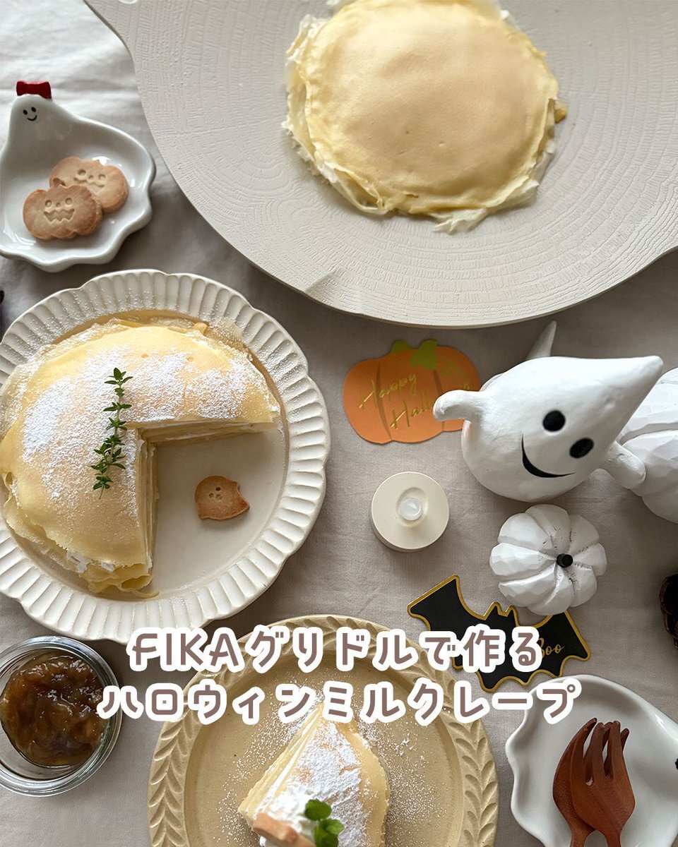 🎃 ハロウィンミルクレープ FIKAグリドルでスルンと焼ける丸いクレープ 米粉クレープにさつまいもペーストとホイップを重ねて、 ハロウィンクッキーをトッピング! おもてなしスイーツにもぴったり #FIKA #ハロウィンレシピ #ハロウィンスイーツ #ミルクレープ #おうちカフェ #秋スイーツ pic.x.com/ea4mGt5ZaL