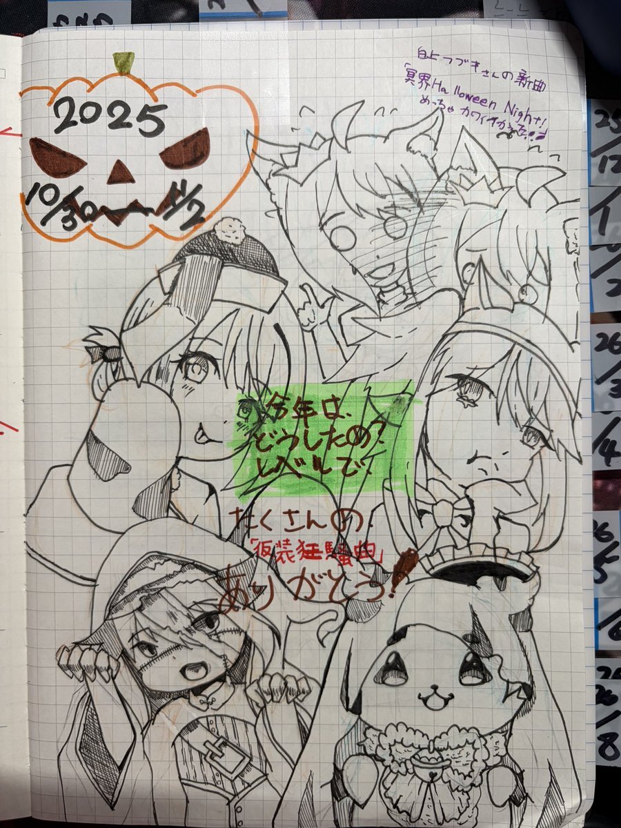 本日の #庭鳥絵日記 改めて最高の #ハロウィン2025 と #仮装狂騒曲 カバーなど!!!! ありがとうございました!🎃 #手帳タイム #しぐれうい #るんるんびじちかん #絵フブキ #SeraPic #庭鳥の落書き #イラスト pic.x.com/3hZJu8dDsg