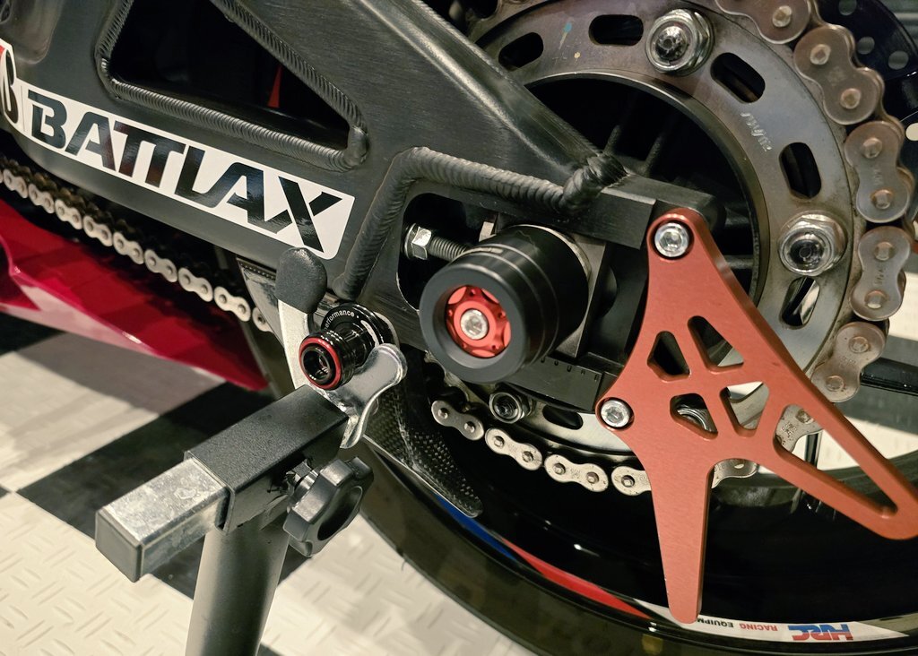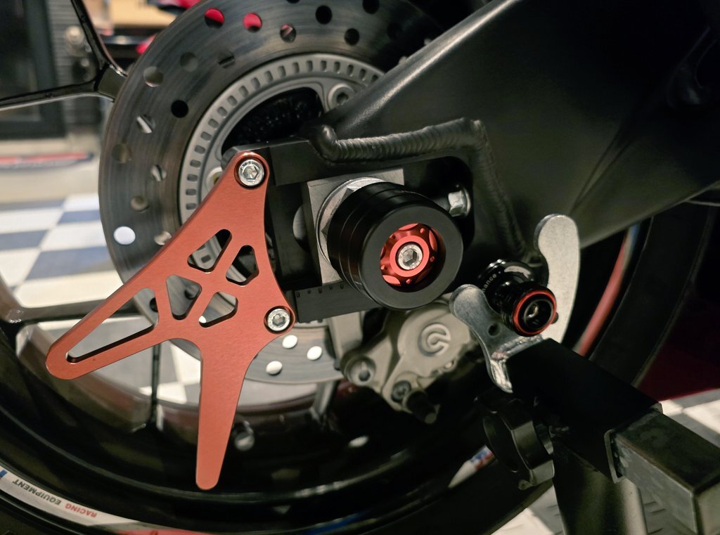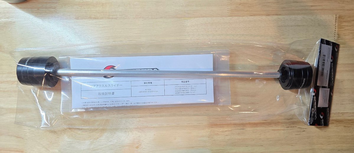 トリプルアールのカスタム続く🏍️ スピードラのリアアクスルスライダーを装着🔧 出来ればこいつの出番が無いことがいいけど、ちょっとしたお守り&心の平穏😊 #バイクカスタム #バイク好きと繋がりたい pic.x.com/YRkbs0bjWG