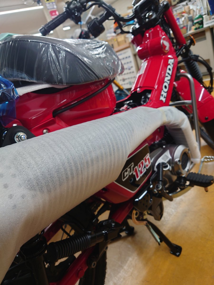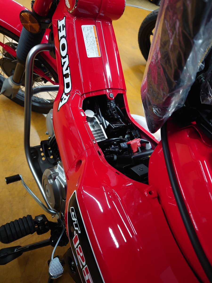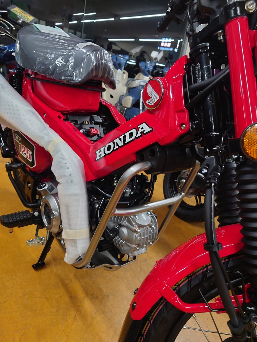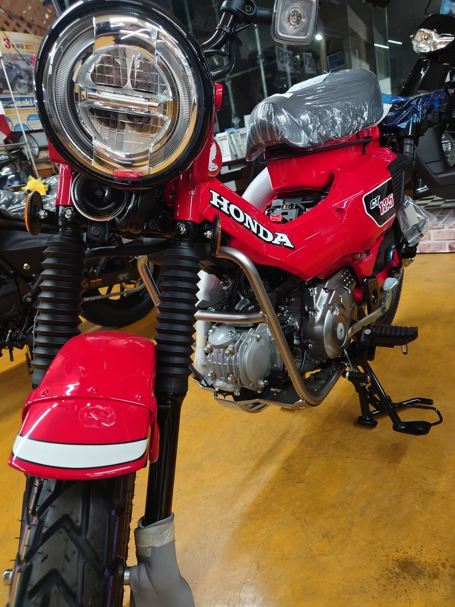 こんにちは😉今日は、久しぶりに入庫しましたバイク✨ホンダのCT125ハンターカブさんです😊最近、店頭にも、並ばなかったカラー🤩赤色が来ましたぁ〜🥰街なかでも、林道やオフロードでも、目立つマシンは、店長も、推しのカラーですよ〜👍 #バイク好きと繋がりたい #ホンダCT125ハンターカブ pic.x.com/QqsyJCJzI0