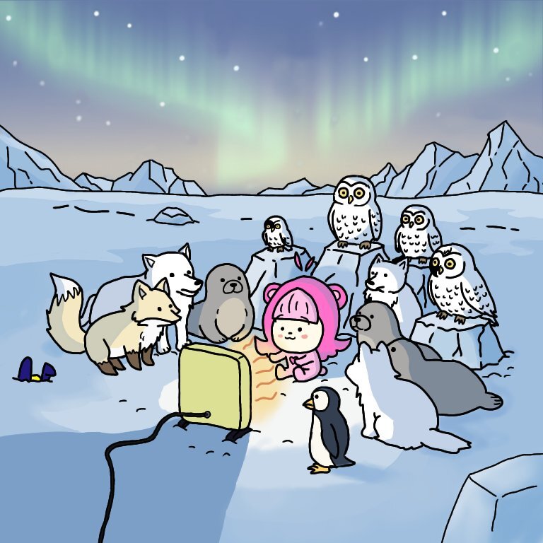 『これ温かいんだよー🐻』 #ひちゅクマちゃん #北極のお友達 #オーロラ #暖房器具 #ストーブ #ペンギンは何をみる #イラスト毎日投稿 #いつもいいねやリポストをありがとう