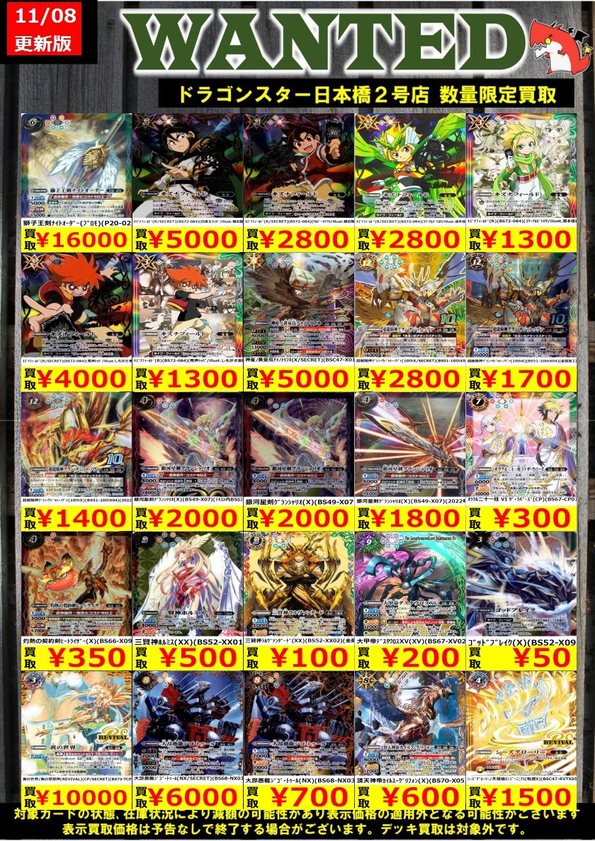 *◇*◆*◇*◆*◇*◆*◇*◆*◇*◆* ◇* #CB日本橋店バトスピ買取表 *◇*◆*◇*◆*◇*◆*◇*◆*◇*◆* ◇* 新規のウシワカと 相性の良いキリカゲXの 買取強化中です‼️ 皆様のお持ち込みお待ちしております👍 #カードボックス日本橋店 #バトルスピリッツ #バトスピ pic.x.com/AT4KMXDoxc