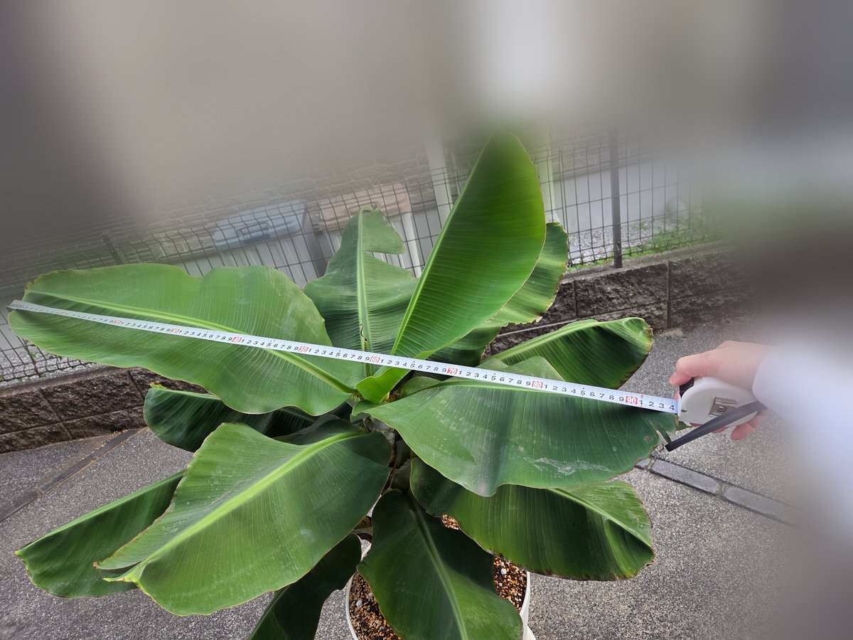 バナナの苗がやってきて6ヶ月。 今回は測ってみた。 (計測11月9日) 高さ 85cm 横幅 94cm 茎 10cm 茎がほんと太くなった😳 そろそろおうちに入れなきゃなんだけど葉っぱがでかい😂 #佐藤景瑚 #バナナ番長 #JO1 #バナナ成長記録 pic.x.com/exwyqctVxc x.com/meganeko3/stat…