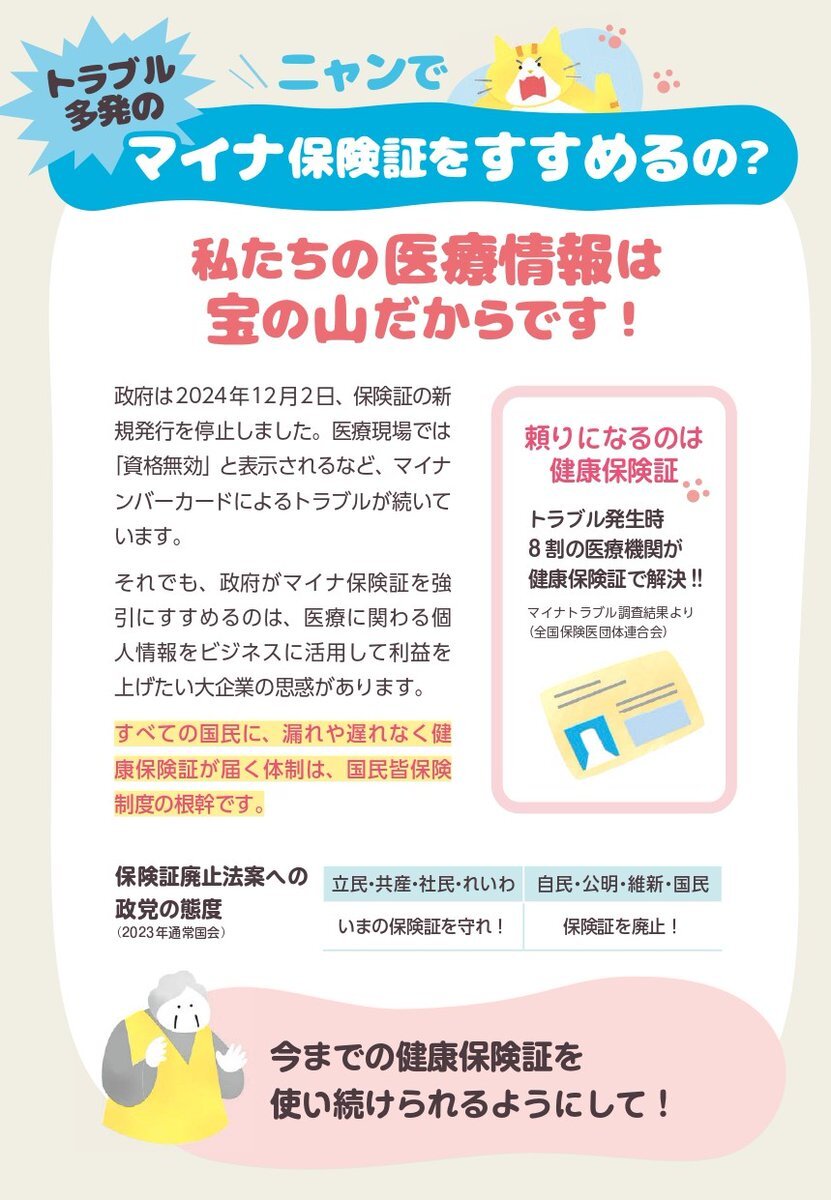 保険証なくすな! #パスポートを身分証明書に戻す #ナンマイダーカード #マイナ保険証紐付け #マイナンバーカード返納 #現行の保険証を残して下さい #健康保険証の存続を min-iren.gr.jp/news-press/gen…
