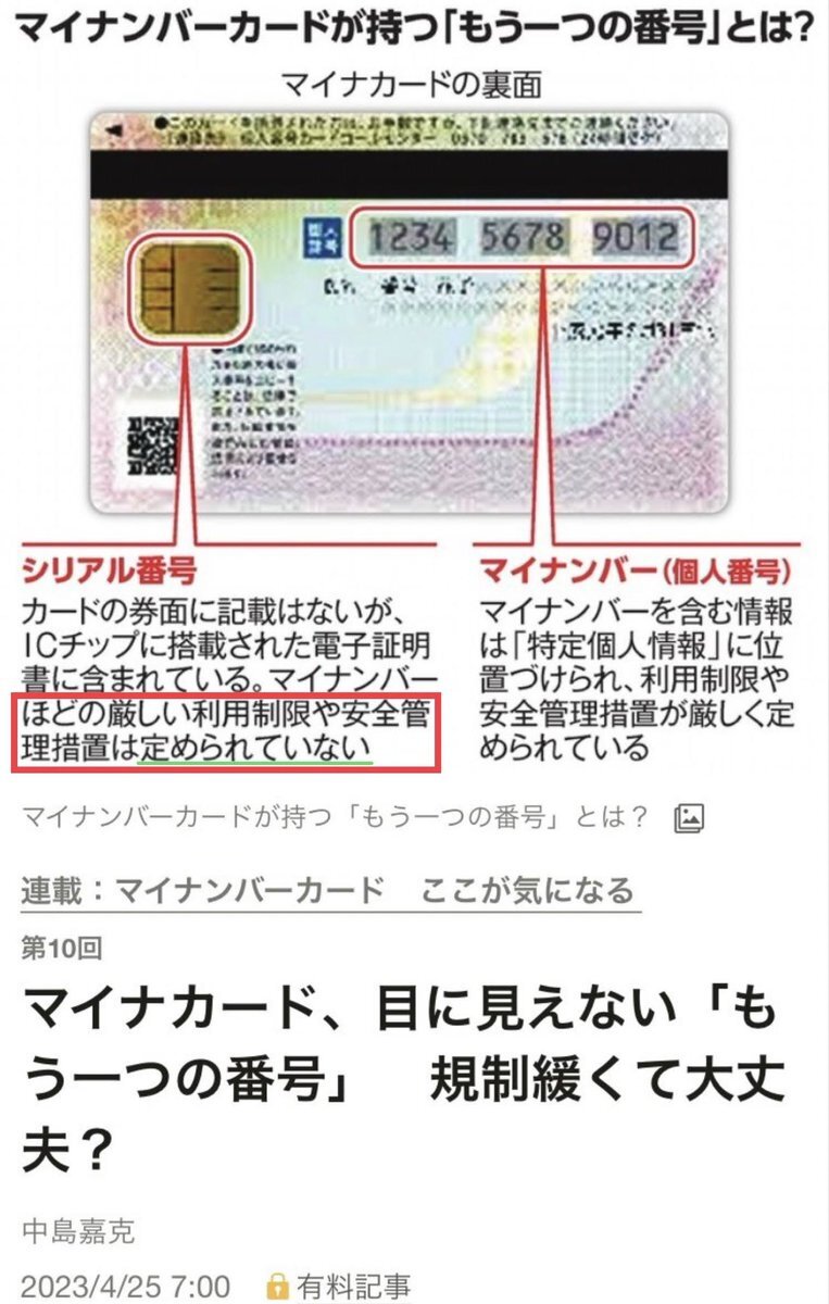 2015年、マイナンバーの紐付けに関し。 山本太郎「最初から紐付けを強制すると反発があり、法案が通せないかもしれないのが見え隠れする。後々、見直しで強制になる可能性がある。これって騙し討ちで、詐欺的商法」 この時から10年経ったいま、危惧していた事が現実に。