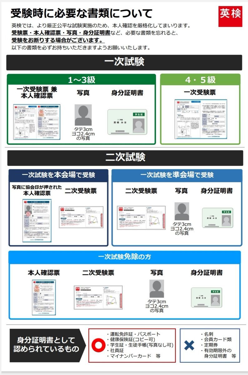 一例を出しますと英検の受験に必要な身分証明書にパスポートがありますが、これには発行時期の明記がありません。 ただ #パスポートを身分証明書に戻す に越したことないのは言うまでもないです。 #ナンマイダーカード #マイナンバーカード返納 #現行の保険証を残して下さい #健康保険証の存続を
