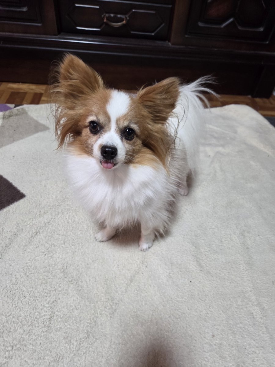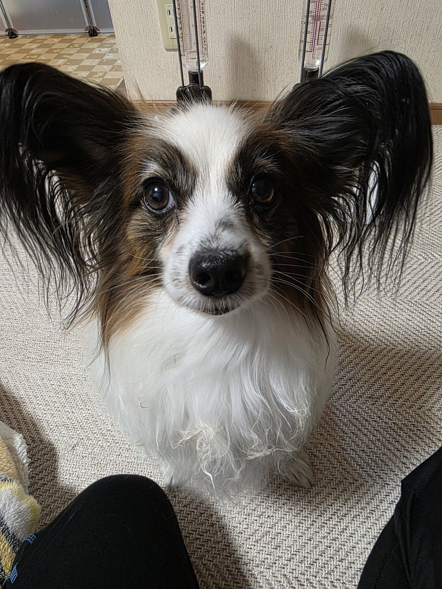 キョトン顔のあたくちからおはようございます。週末はお天気良いみたい、紅葉見に行けるかなぁ(みこちゃんに付く種のお土産が大変なんよー)楽しい1日を過ごしてなぁー #パピヨン #癒し犬 #パピヨン好きな人と繋がりたい pic.x.com/GHaSAjROeS