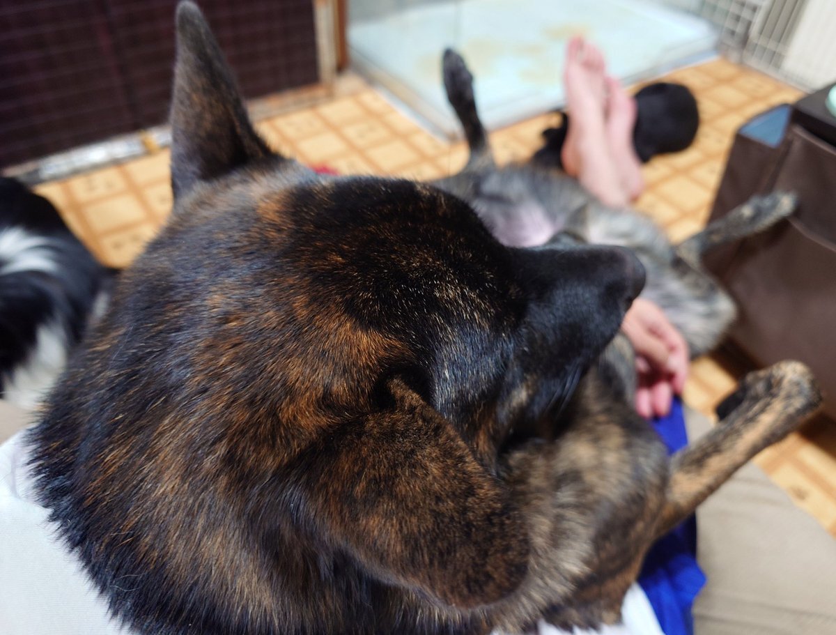 人間の足の上でもちゃもちゃしてる姉妹 けっこう重い(27kgと4kg)