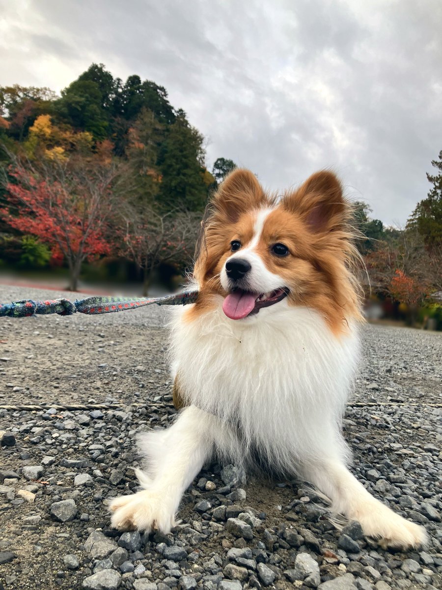 もえ🐾 背景綺麗なのに もえちょっぴりつまんないのお顔💦 この日は寒かったものね😅 今シーズンのもえと紅葉はこれにて終了🍁 今年の秋は短かった😭 来シーズンはゆっくり楽しめるといいな🍀 #パピヨン #犬のいる暮らし #犬のいる幸せ pic.x.com/kxdBDaRQmA