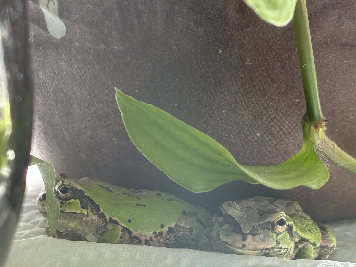 Threadsを更新しました。 きゅーちゃん「ねぇ、ななちゃん。はてちゃんにぼくがおはなししたいっていってる、ってつたえてくれない?」 threads.com/@kuro.mya/post… #アマガエル #カエル #両生類 #ヒガシニホンアマガエル