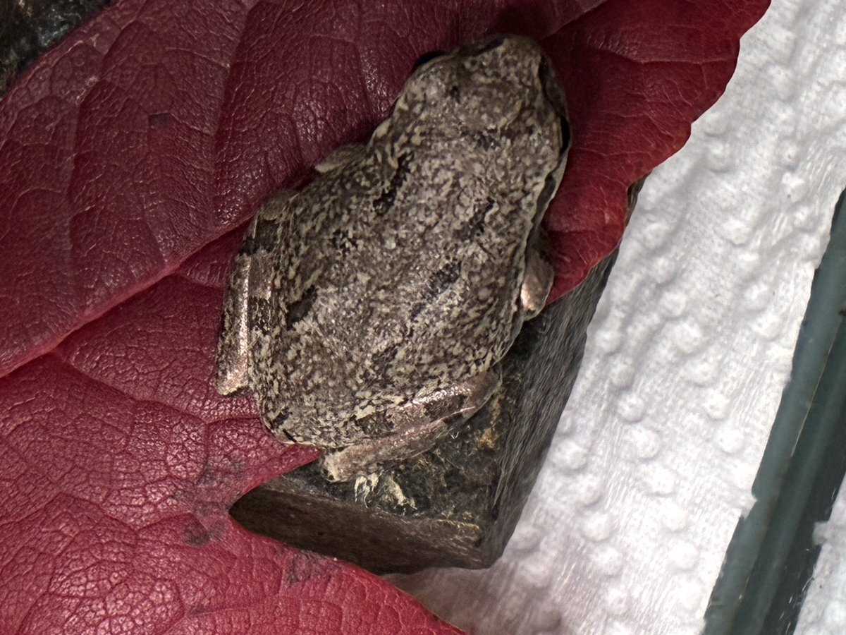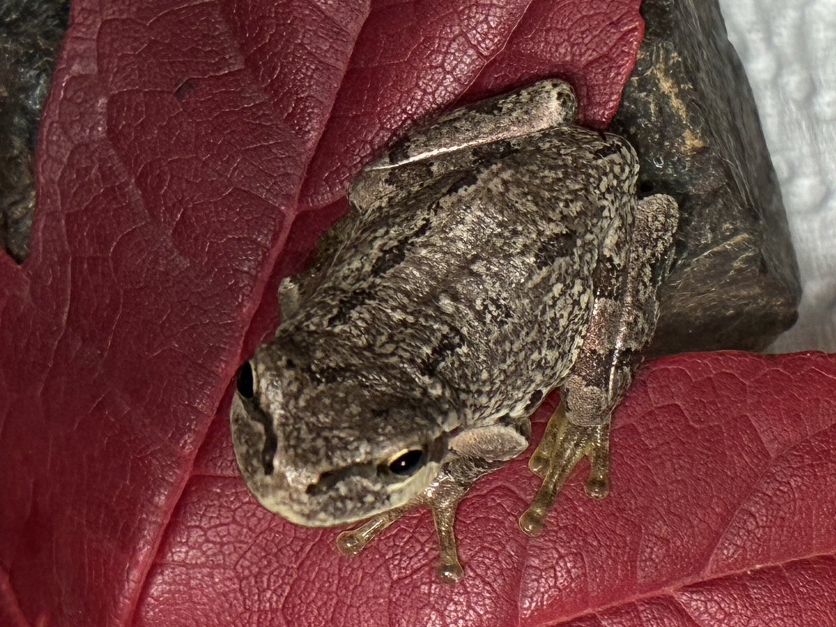 今年、7/22に上陸した🐸 カエデの🍁葉の上でうっすら 紅色に‼️ もっと色んな色の落ち葉で 試してみよう❣️ #ヒガシニホンアマガエル #体色変化 #ニホンアマガエル #カエル pic.x.com/9W4otMAaIP