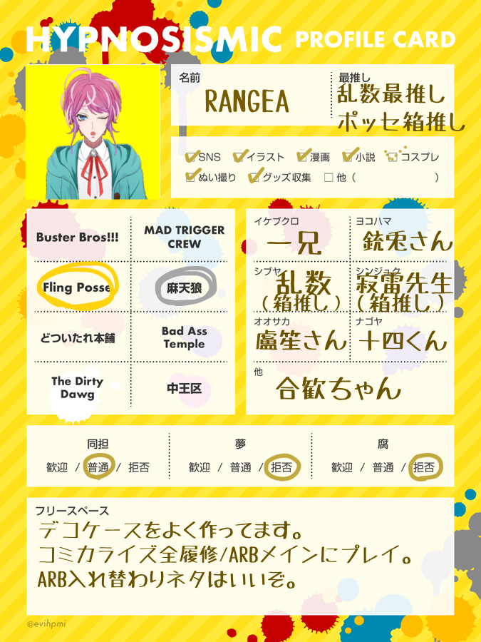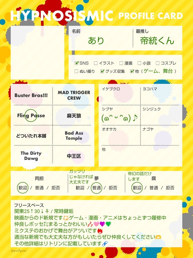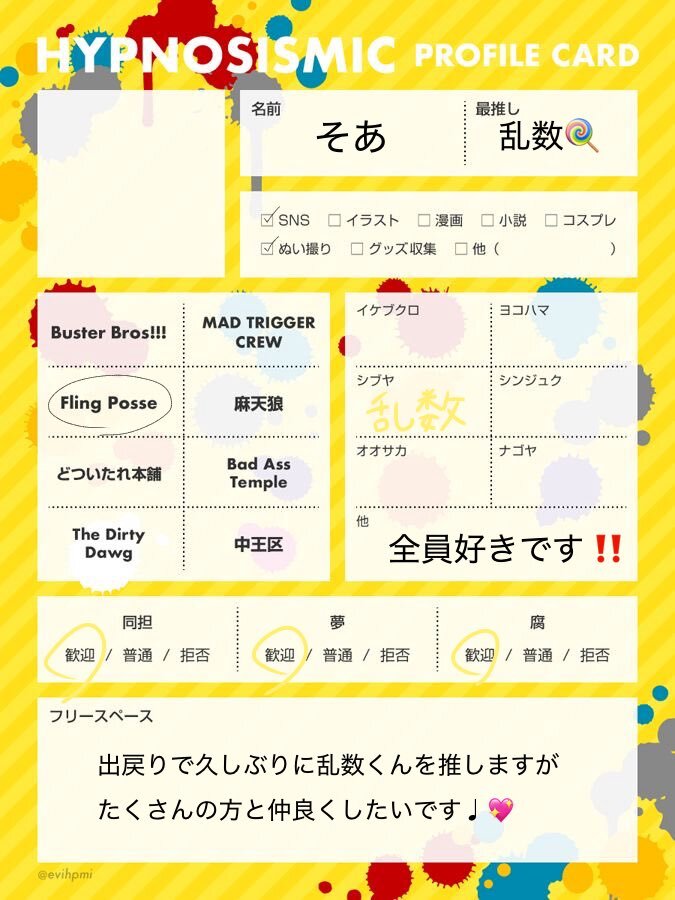 @null 反応引用先にお願いします💛💛 #ヒプマイ好きさんと繋がりたい #ヒプマイ好きな人と繋がりたい #ヒプマイ自己紹介カード x.com/e_yr214/status…