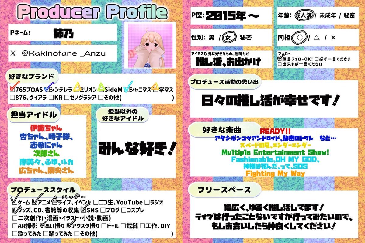 ゆるく推し活しております~ 今は特にアイマスとヒプマイにハマっております! SNS上でお話したり、ライブ等リアイベに行ったりと仲良くできるお友だち募集中です🥹 反応いただいたらフォローしにいきます✨ #アイマスPのプロフ帳 #ヒプマイ自己紹介カード #ヒプマイ好きな人と繋がりたい pic.x.com/LPeaIHbWhN