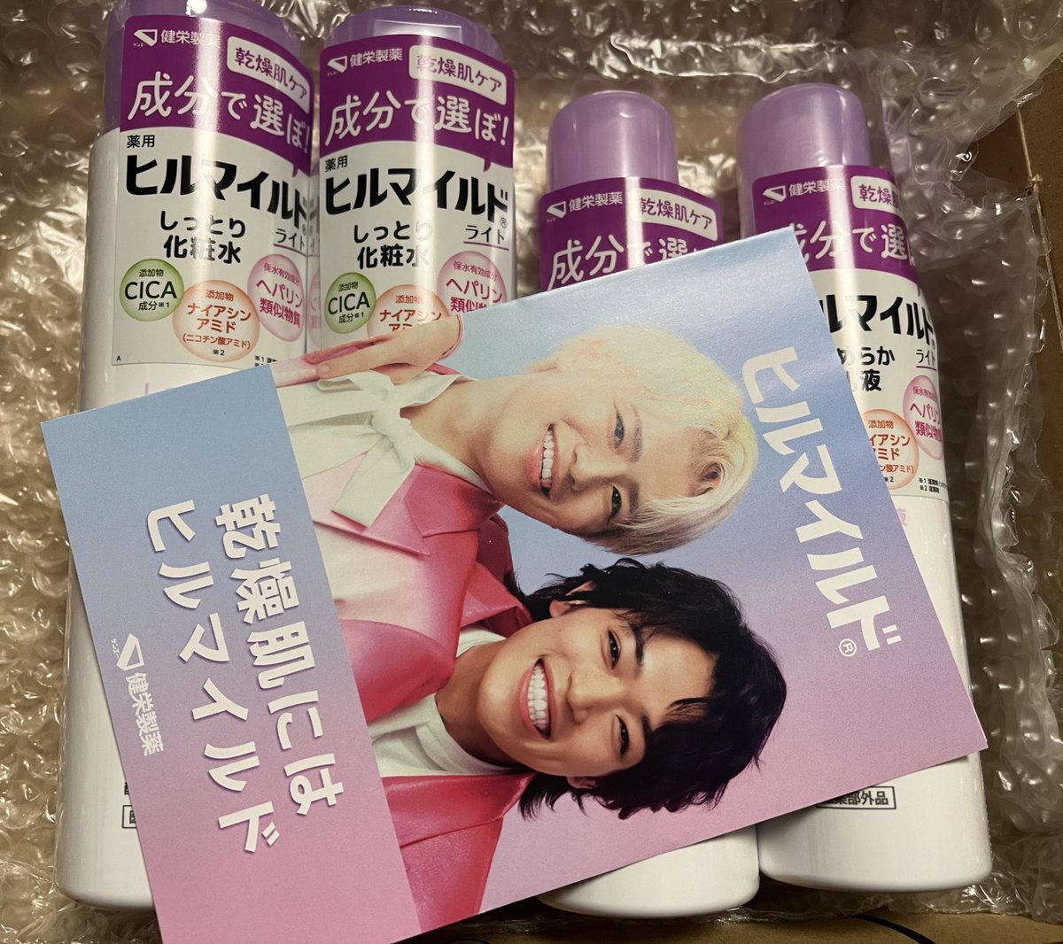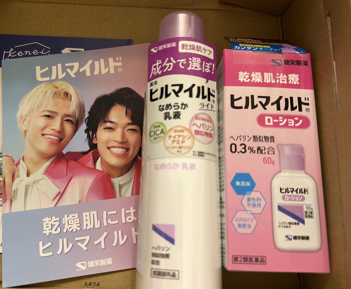 原くんと篠塚くんの起用で化粧水と乳液を、ヒルマイルドライト化粧水と乳液に! 息子が乾燥肌で、化粧水に悩んでいましたが、今調子が良いみたいです💚🤍 #金曜日はxでヒルマイルド #ヒルマイルドライトとなまがきちゃん #原嘉孝 #篠塚大輝 #健栄製薬 pic.x.com/3R3OJ8XWO7 x.com/kenei_pharm/st…