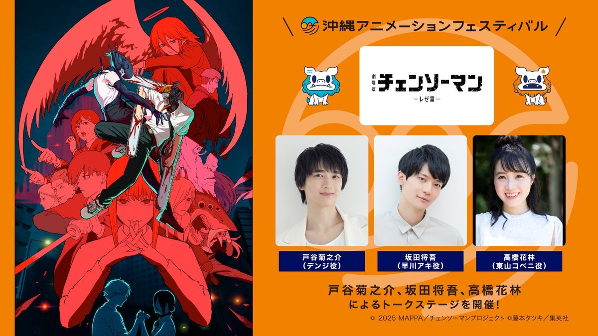 🌺沖縄アニメーションフェスティバル2026にて 劇場版『チェンソーマン レゼ篇』参加決定!!🎉 【開催日時】 2026年1月24日(土) 15:00〜 【入場無料】 【出演者】 戸谷菊之介(デンジ役) 坂田将吾(早川アキ役) 高橋花林(東山コベニ役) 【チケット抽選期間】 11月19日(水) 12:00〜 開始