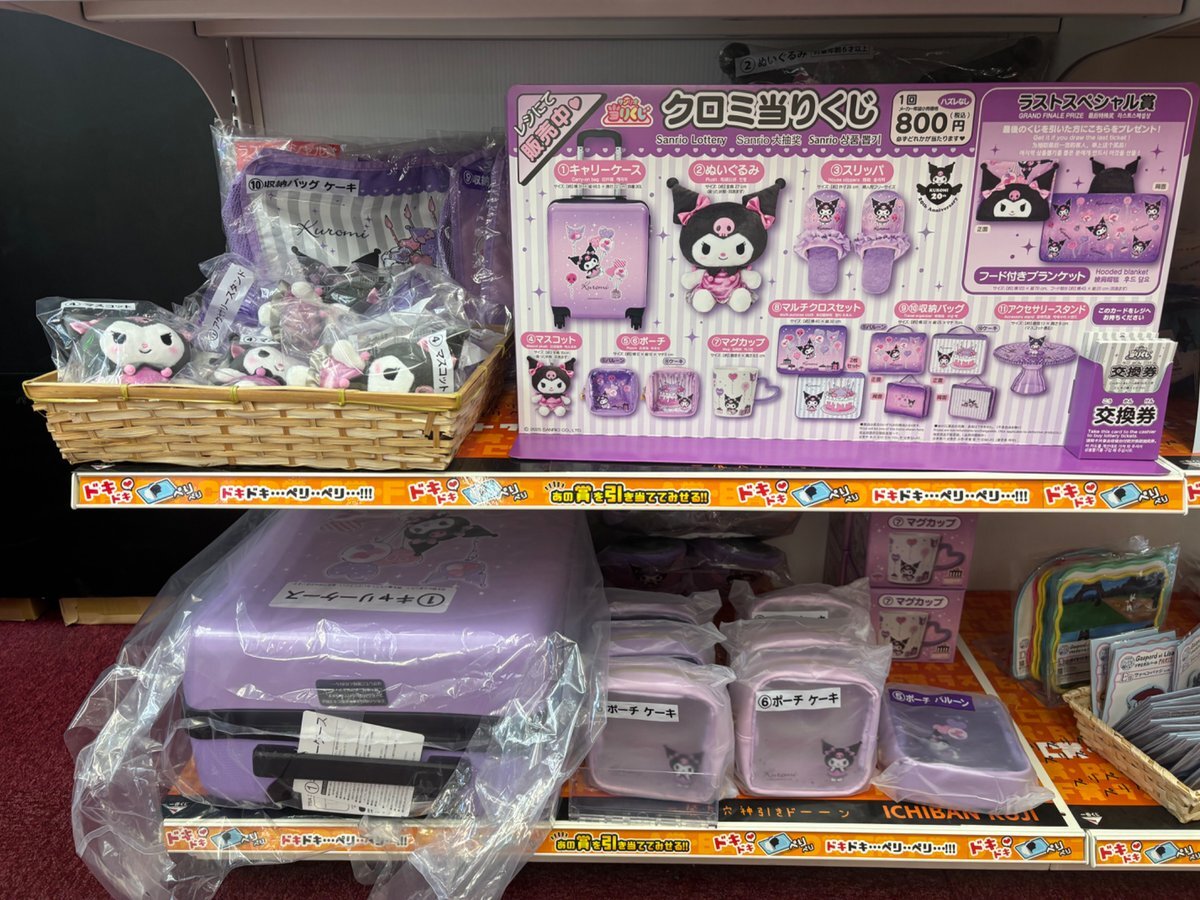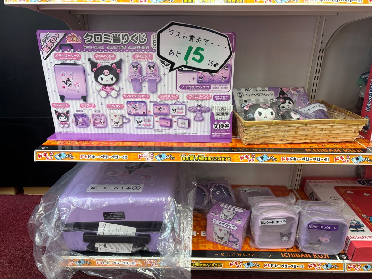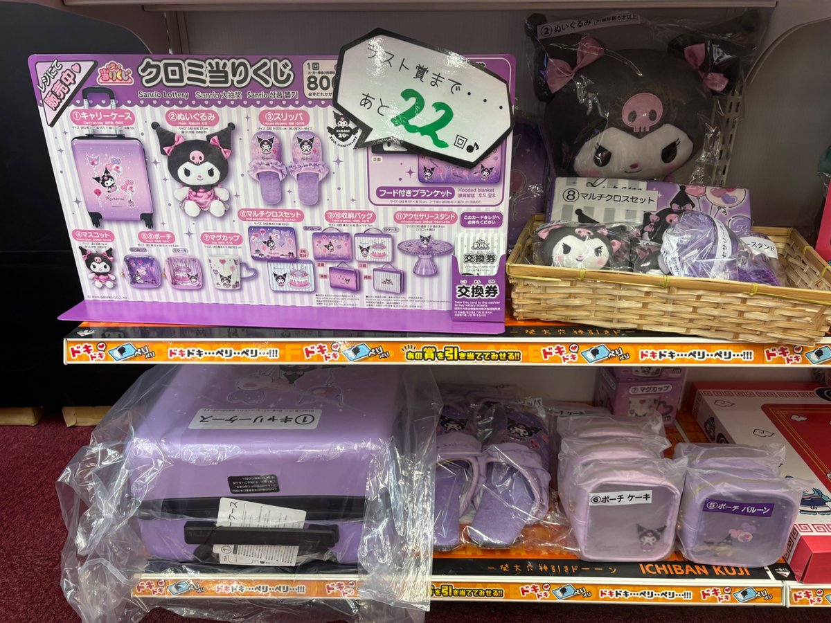 #サンリオ #クロミ 当たりくじ ラストまで15回になりました💜😈🖤 スーツケースまで残ってるので、かなり激アツ❤️‍🔥 ラストは寒い時期に嬉しい、ブランケット🐑 クロミちゃん好きはぜひチェックしてみてねε”ε”ε”(ノ* •ω• )ノ #ビデアメ一番くじ #一宮 #くじ #愛知 pic.x.com/Ei9cBEHwt8