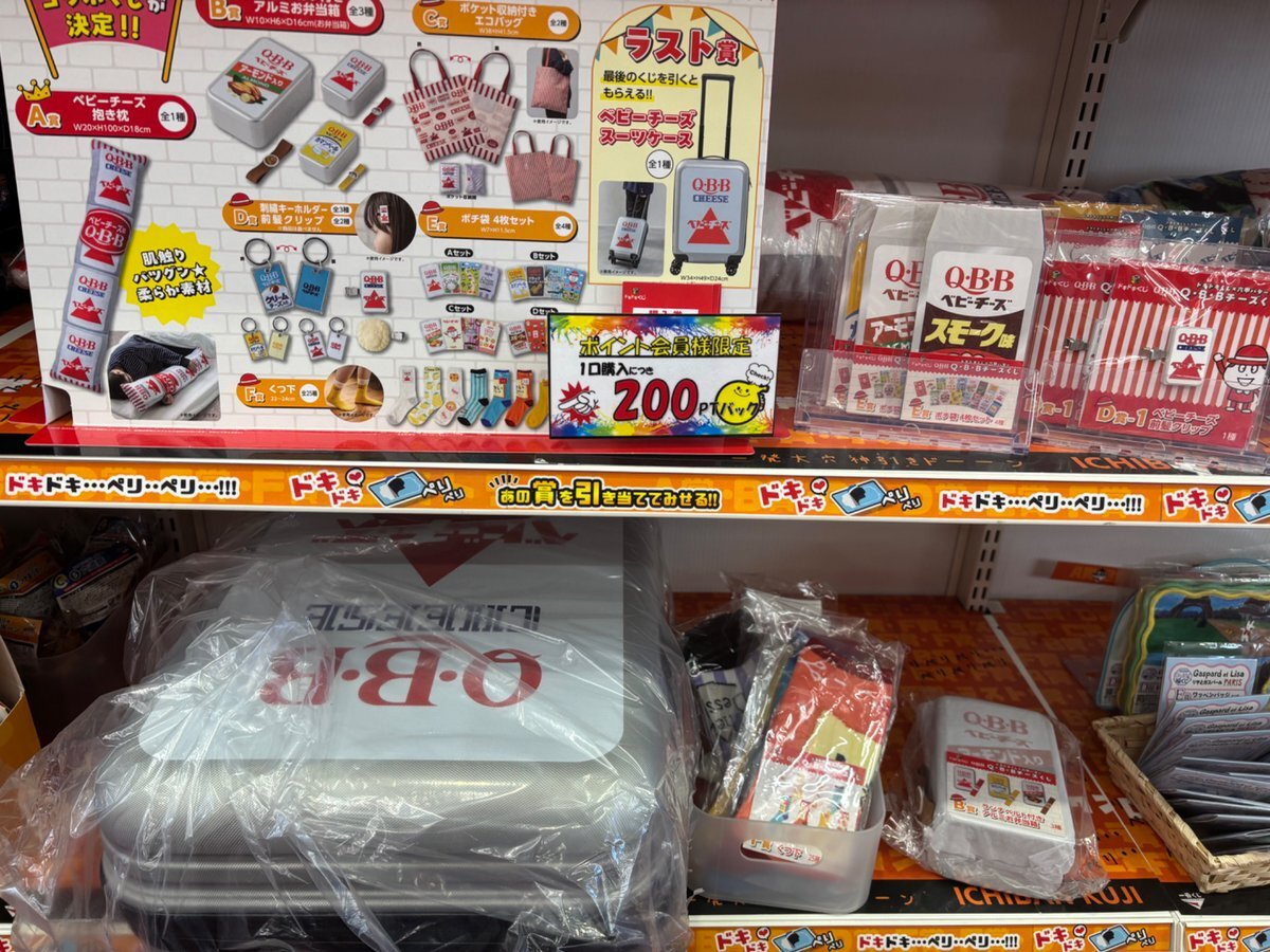 #ドキドキくじ #QBBチーズくじ ラストまで24回🧀 今なら会員様限定♡ ポイントバックキャンペーンも実施中ꕀ⋆ 抱き枕も靴下も、お弁当箱もまだあります♪ ぜひお越しください😊 #ビデアメ一番くじ #くじ #一宮 #ベビーチーズ pic.x.com/NTbcEq1BMJ