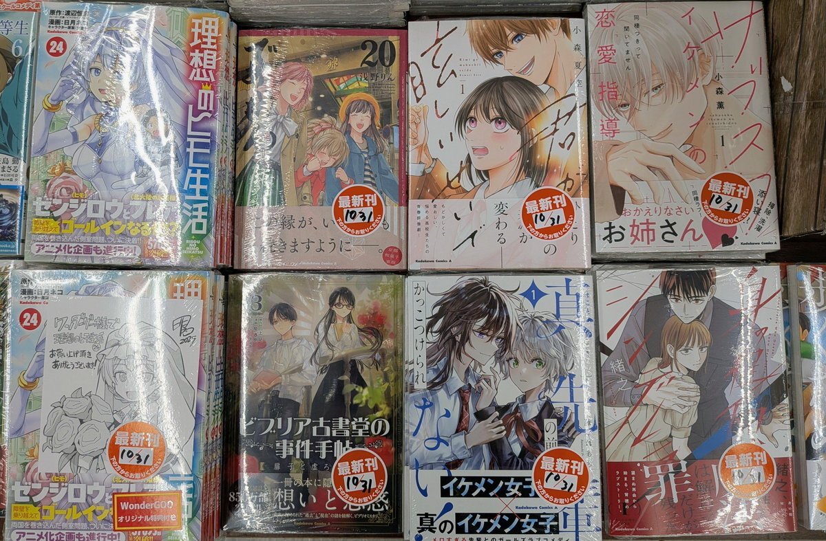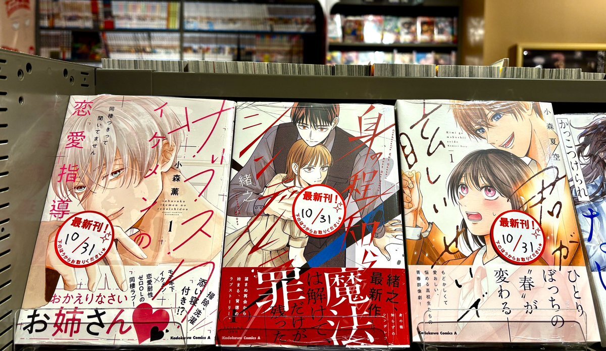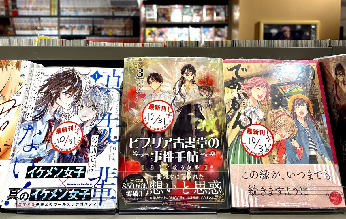 \#KADOKAWA 新刊コミックス入荷‼️/ 10/31発売⭐️その②( 'ω' و(و モテ年下イケメン×恋愛耐性ゼロOLの契約同棲ラブ🏠💕 #サブスクイケメンの恋愛指導 #身の程知らずのシンデレラ ひとりぼっちの“春”が変わる──… #君が眩しいせいで #ビブリア古書堂の事件手帖📕 #理想のヒモ生活 ……etc‼️ pic.x.com/7JzSO53B5r