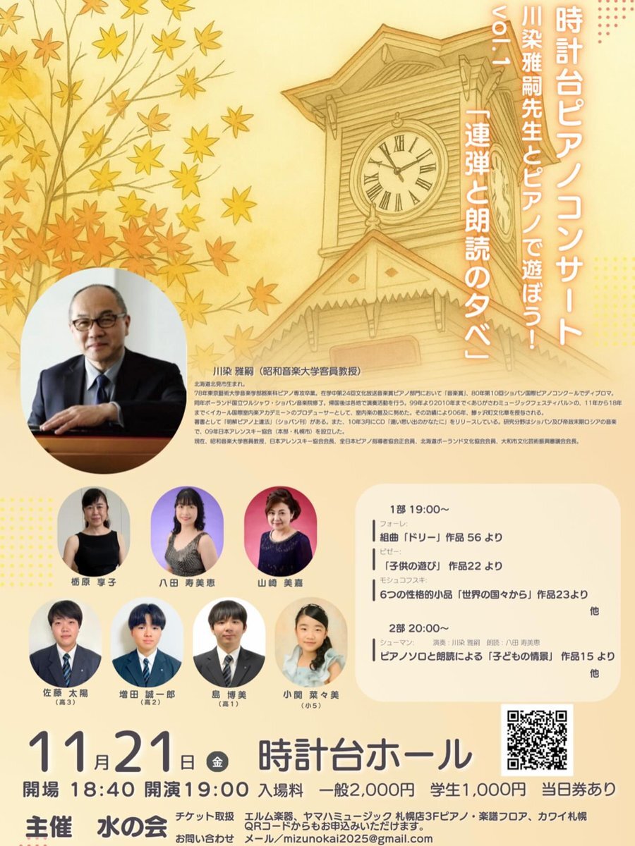 2025.11.8今日、大学の研究室OB会の総会に出席して、小雨さんの宣伝できませんでした‼️小雨さんゴメンナサイ🙇🙇🙇 1週間後に迫った福岡公演、2週間後の東京公演、チケット買ってね〜〜🙇🙇🙇 #ピアニスト小雨 #ピアノコンサート 👇👇👇 instagram.com/p/DQzOsezEe0S/…