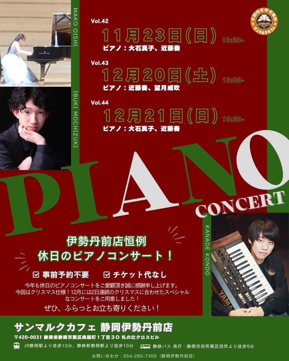 11月,12月もよろしくお願いいたします🤲 @Ibuki_Mochizuki @immortal_dirt5 #サンマルク #静岡伊勢丹前 #ピアノコンサート pic.x.com/vWZ2HK1iyP
