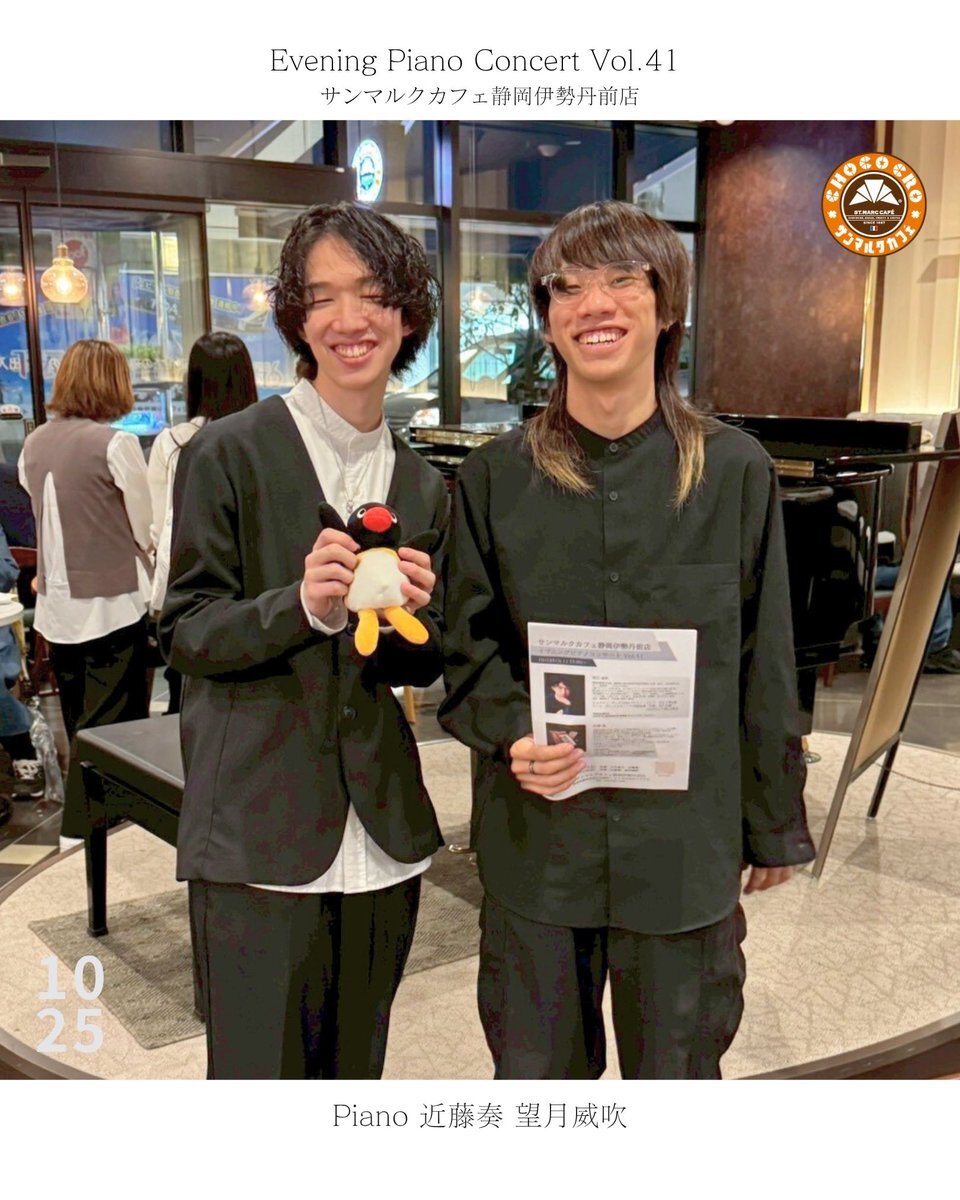 イブニングVol41‼︎ ありがとうございました。ピアノは近藤奏、望月威吹でお送りしました。 @immortal_dirt5 @Ibuki_Mochizuki #サンマルクカフェ #ピアノコンサート 👇セットリストとアンコール pic.x.com/1F0LTcE6Gm