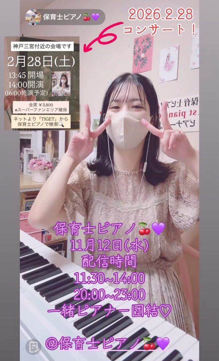 11月12日のTiktok配信情報及びコンサート告知 2026/2/28(土) 3回目のピアノコンサート神戸にて開催! 購入は下記URLへ! 2月13日にお誕生日を迎える保育士ピアノを皆様と一緒お祝いできたら嬉しいです🎂 tiget.net/events/440774 #グランドピアノ #ピアノコンサート #神戸 #Tiktok @yo__yugutoo pic.x.com/0al2BP6jsd