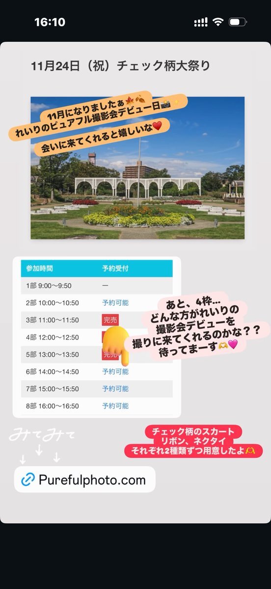 11月になりました🍁🍂 もうすぐれいりがピュアフル撮影会デビューです🤗 ぜひ、れいりの初めての撮影会撮りに来て下さい📸✨️ #ピュアフル撮影会 #ピュアフル撮影会モデル #学生ランウェイ pic.x.com/Z4lkAN7FGw