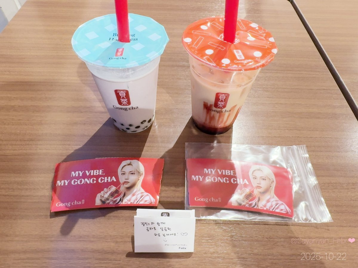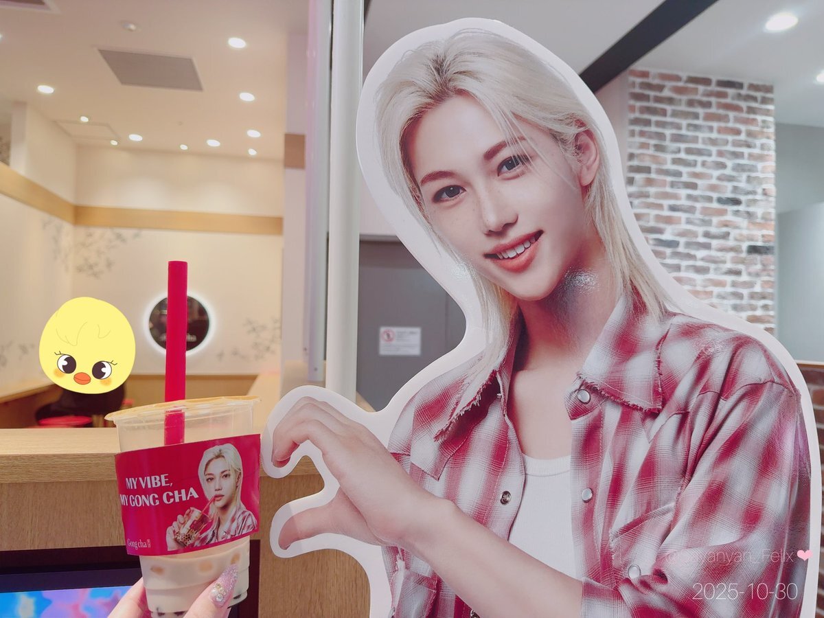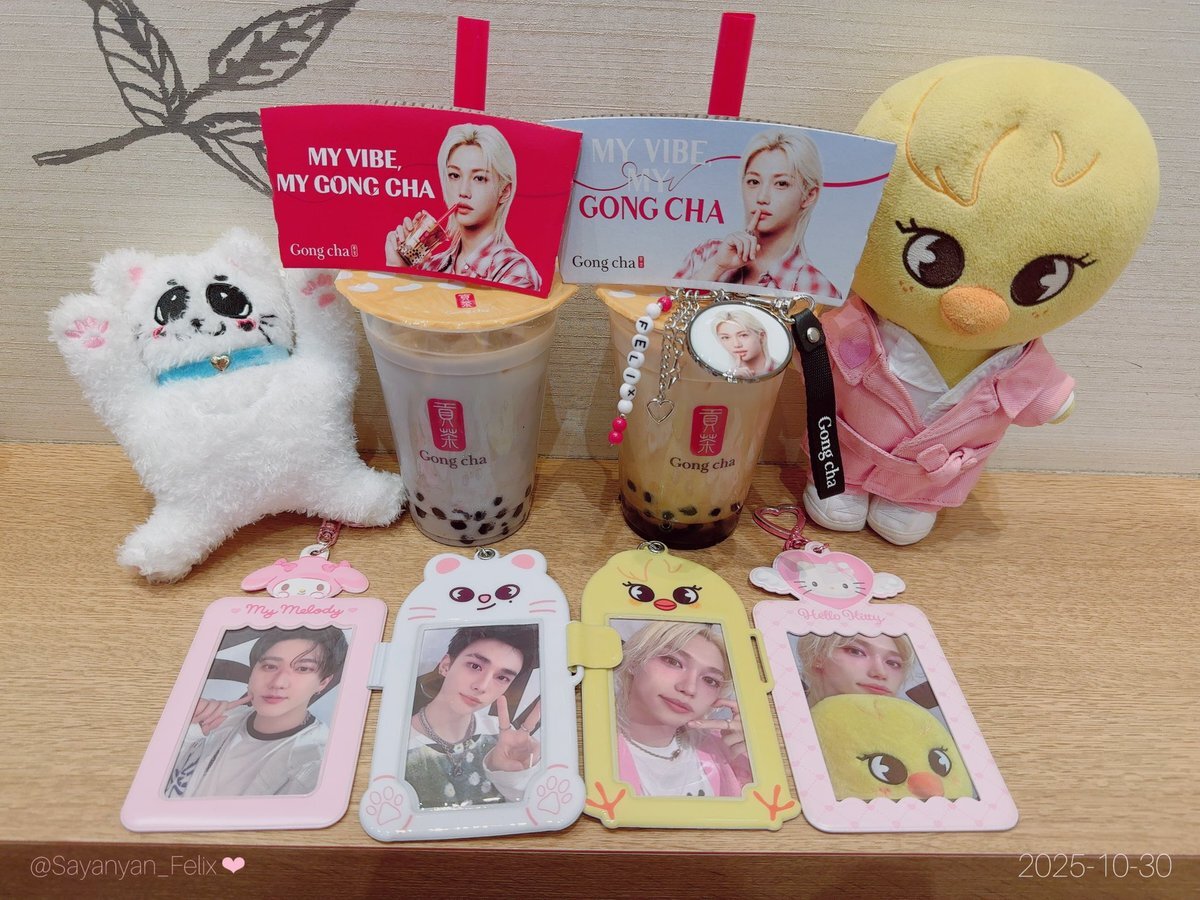 ゴンチャ日記🐣⑨ 20251030 🧋黒糖烏龍ミルクティー+パール ピリちゃんのスリーブもう無かった😢 よく一緒に行くビニペンさん毎回絶対タロミルク😆 🐷🐰💖🐥 #FELIXxGongCha #Felixとゴン活記録 #공차에_더하는행복_필릭스 #Felixとゴンチャタイム #飲んだよゴンチャ #Felix #ピリちゃん #StrayKids pic.x.com/blShytiOxu