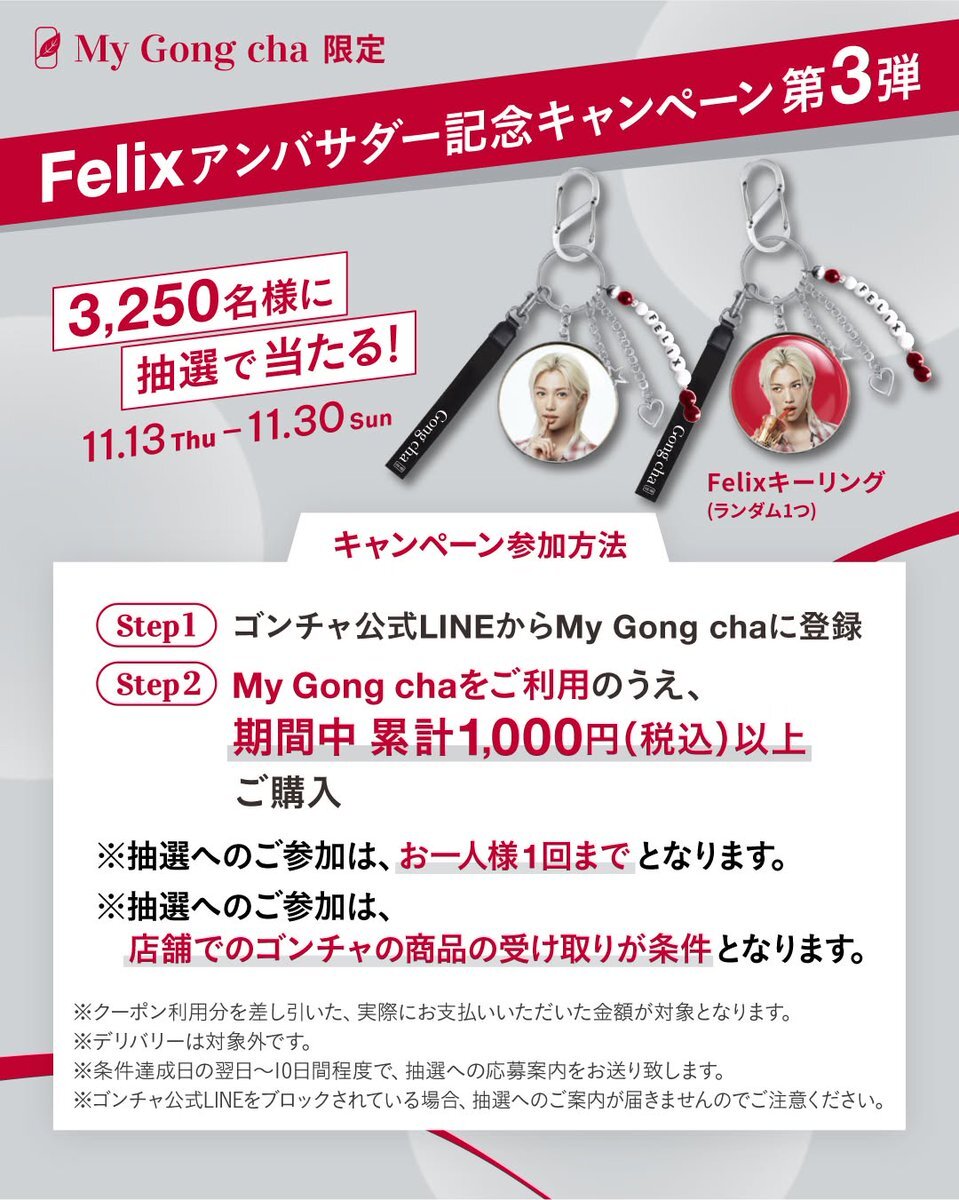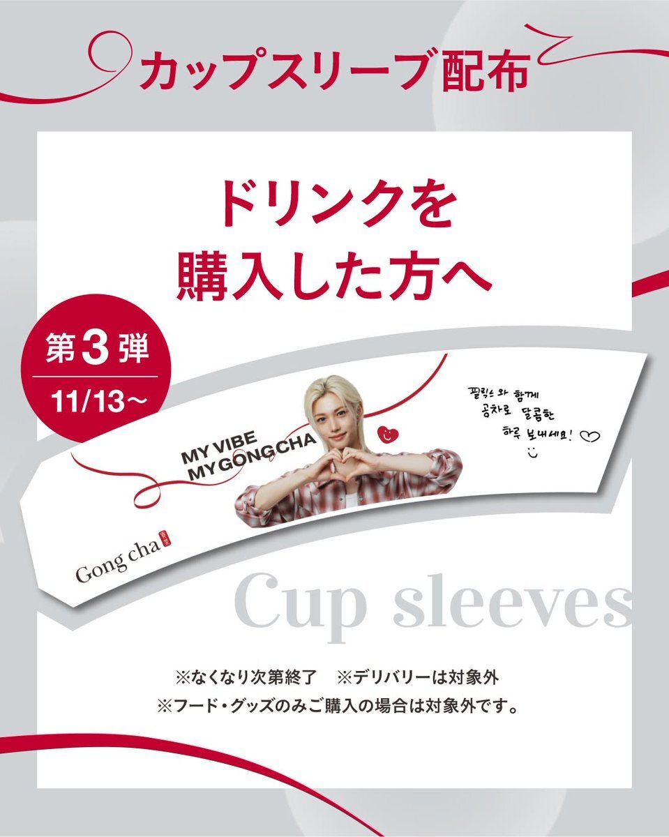 🐥#FELIXxGongCha🧋第3弾 \✨11月13日START✨/ ✅️第3弾カップスリーブ ✅️アンバサダー記念キャンペーン第3弾(11/30まで) 詳細は公式をご確認ください #フィリックス #ピリちゃん pic.x.com/OFBSIyMSrn