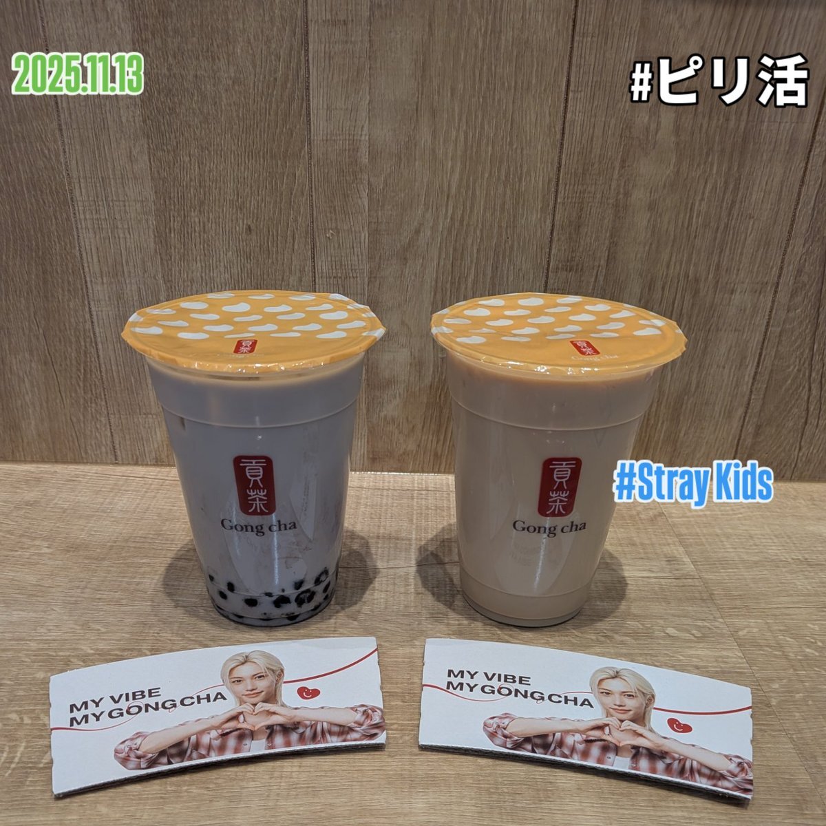 ゴンチャ日記🐣⑩ 20251113 🧋アールグレイアーモンドミルクティー+パール ピリちゃんのスリーブ第3弾もかわいい 🥰🫶🏻❤️ アーモンドミルク好き #FELIXxGongCha #Felixとゴン活記録 #공차에_더하는행복_필릭스 #Felixとゴンチャタイム #飲んだよゴンチャ #Felix #フィリックス #ピリちゃん #StrayKids pic.x.com/eGylFBA0PB