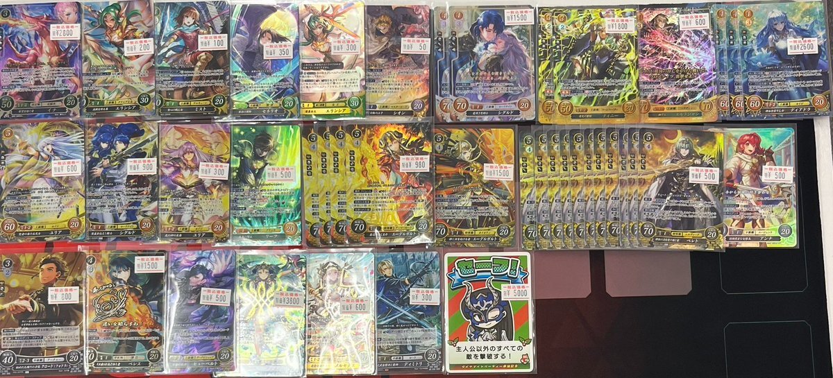 【#ファイアーエムブレム 0】 🍓サイファ担当のマイケルです🍓 特価ショーケースまたまた増えてきました(^O^)/ お買取りのお持ち込みいつもありがとうございます🙇♂️ 仕事帰りなどに是非一度お立ち寄りください(*´ω`) #FEcipher pic.x.com/YeuPCGjmln
