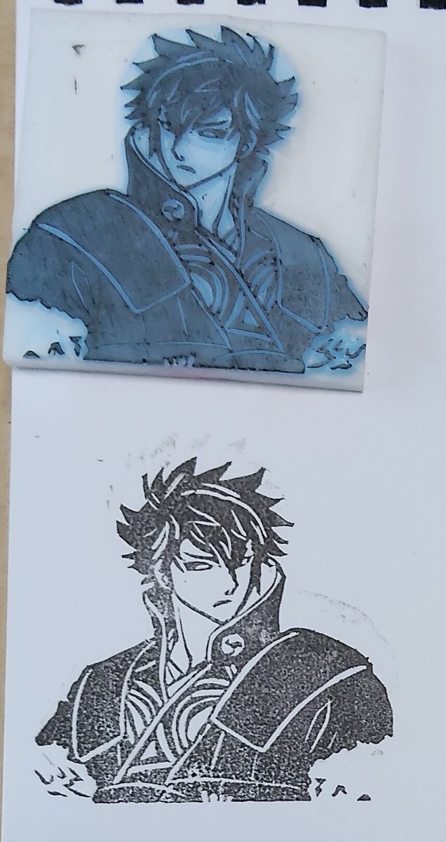 最近、朝に出遅れてますが、10月10日は #ファイアーエムブレム 覚醒より キルソードもとい、女嫌い(ロリコン)の剣士ロンクー 「女は近づくな」 #消しゴムはんこ #おらとく印 #FE覚醒 pic.x.com/zGW15u1J14
