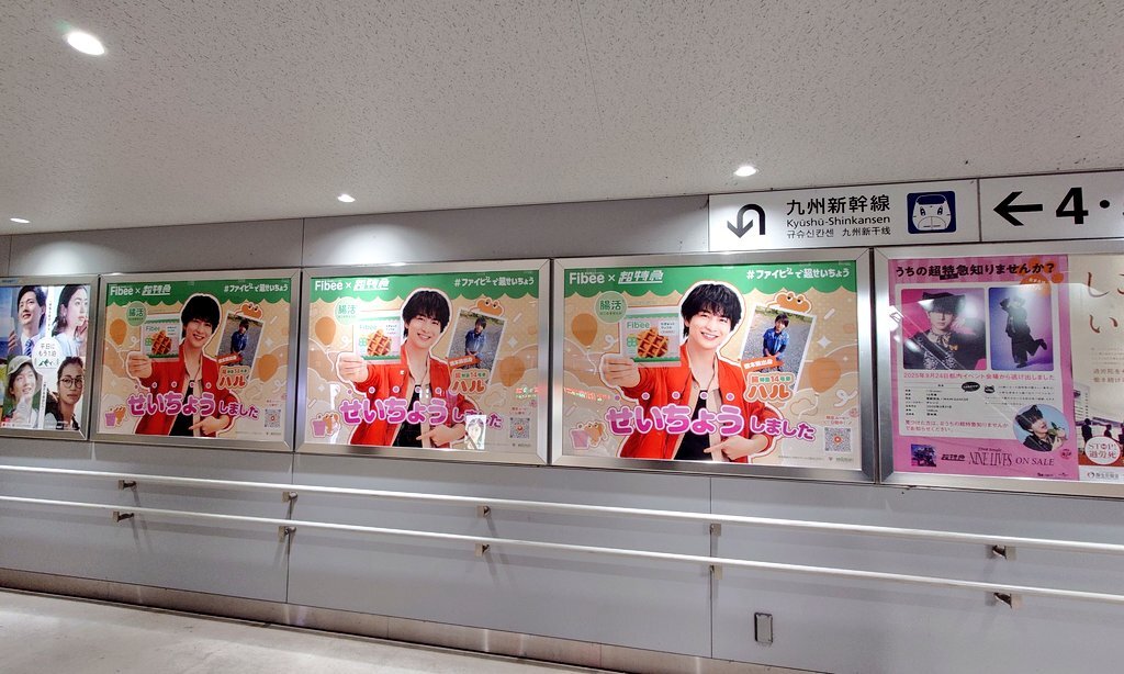 ライブ前に熊本駅にファイビーさんの広告見にいったんですけども、改札抜けた所全面にドドンと貼ってあってファイビーさんの愛がとても嬉しかったです🙏✨ #ファイビーで超せいちょう pic.x.com/2TnWBd7PJB