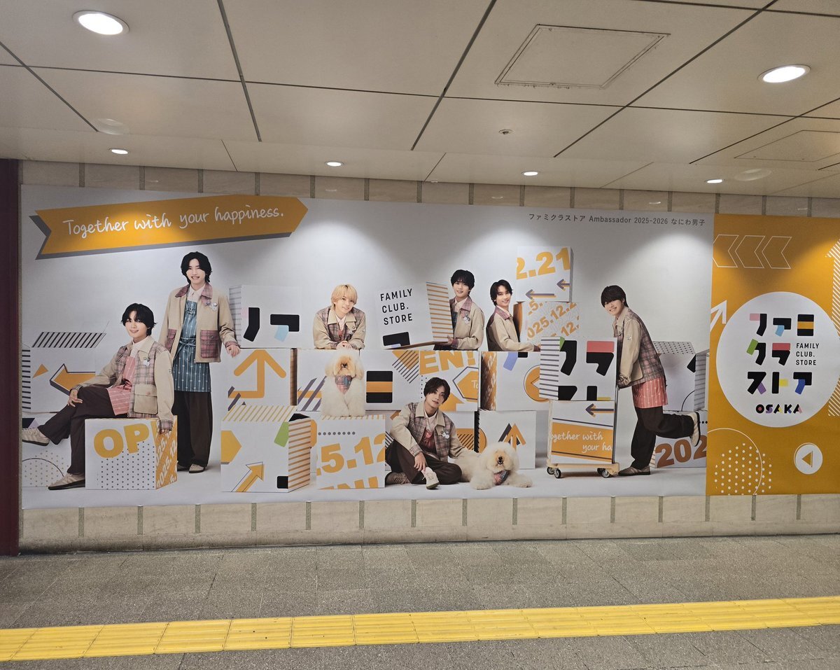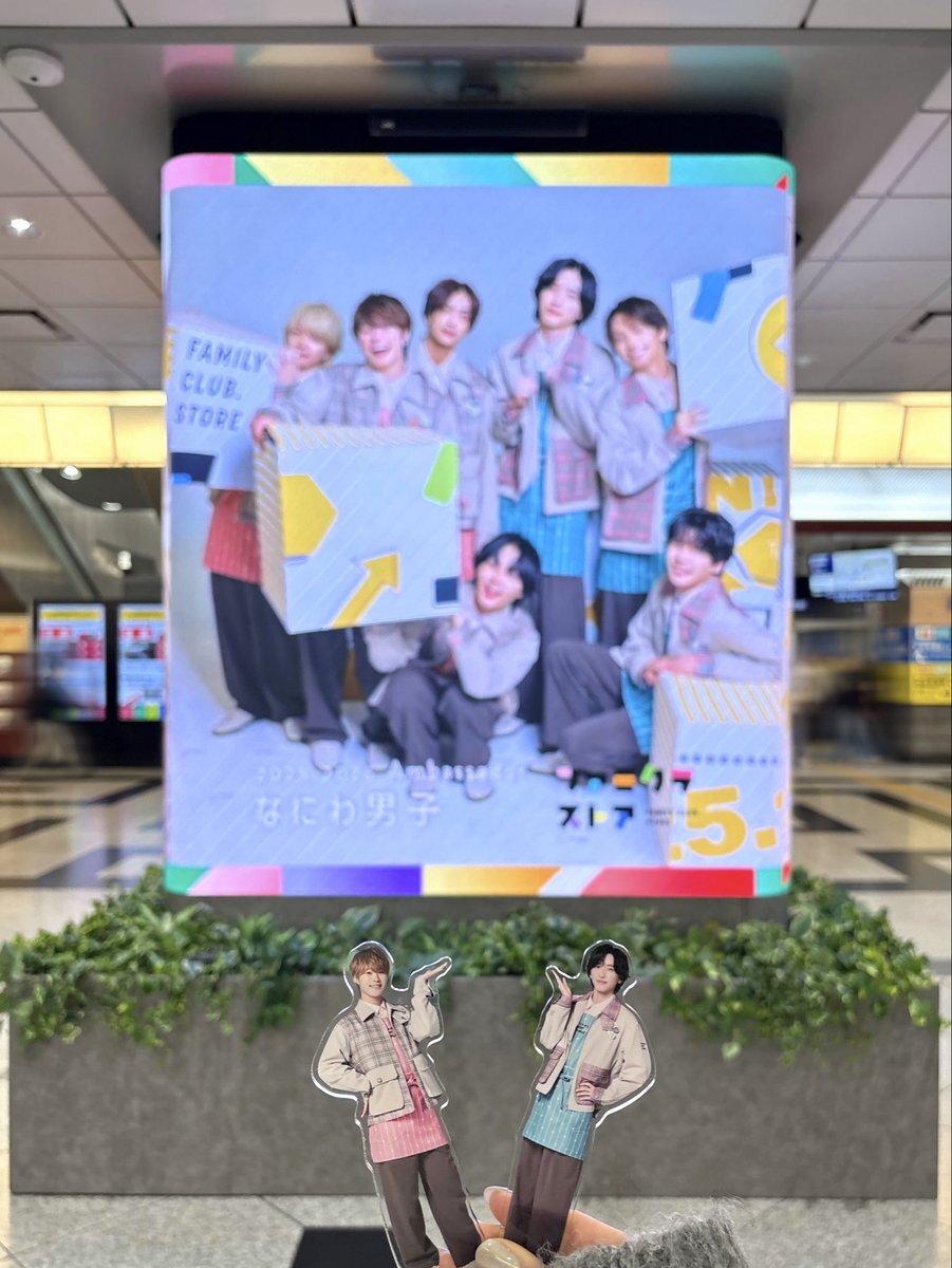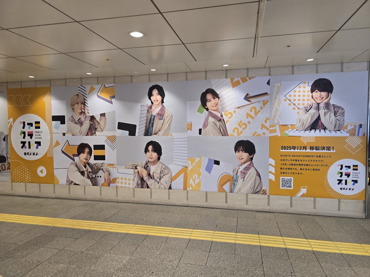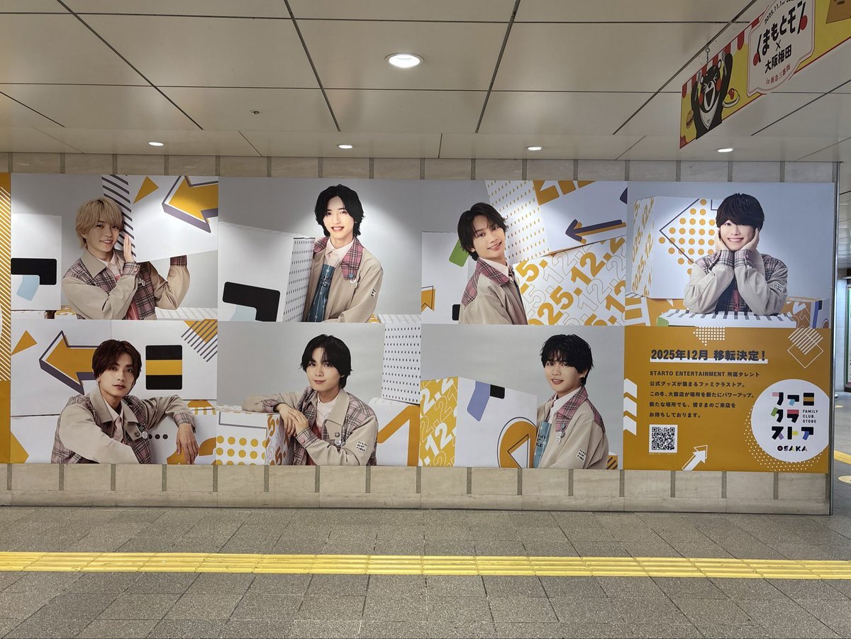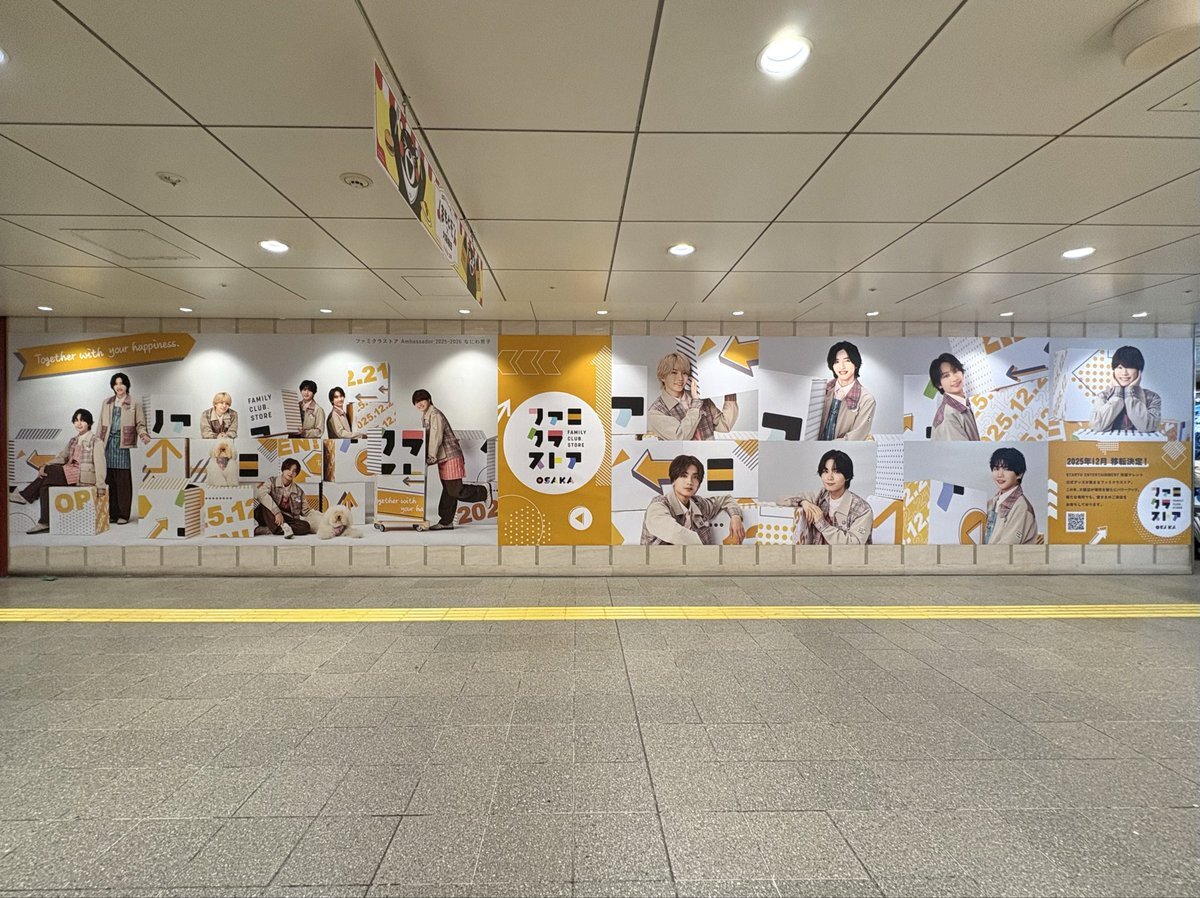ファミクラストアアンバサダー広告 最終日に観てきた ☺︎🌼 阪急大阪梅田駅2Fコンコース~JR大阪駅 通路 阪神大阪梅田駅西口改札外壁面 #なにわ男子 #ファミクラストア pic.x.com/pZy2jRzk48